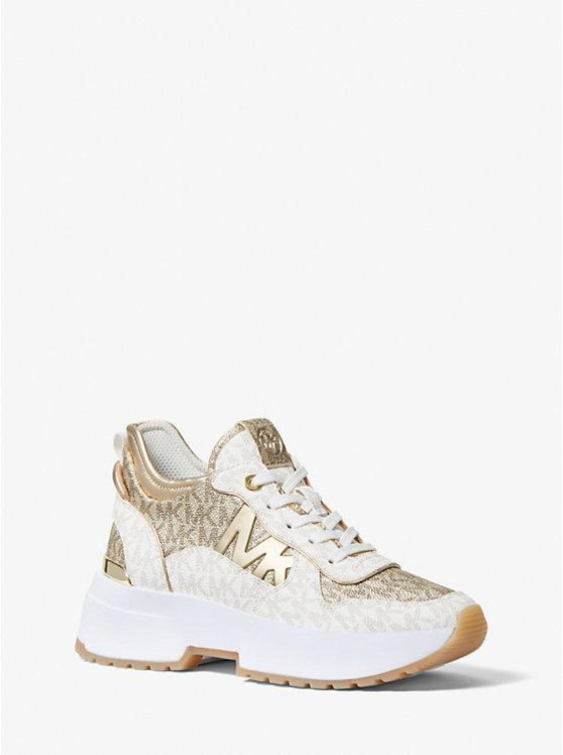 The Muse trainer will deliver instant personality to every step. Our Signature-print canvas and a metallic finish combine to give this sneaker a sporty yet luxe finish, while its chunky rubber soles provide more lift than the average pair. A dress or casual-cool denim is all you need to create a winning look.