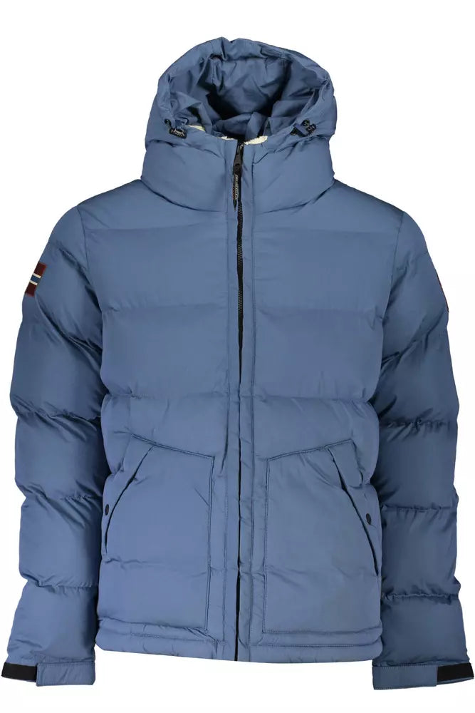 Elevate your wardrobe with a touch of eco-conscious elegance from Napapijri. Wrap yourself in our sophisticated long-sleeved jacket, boasting a snug hood perfect for brisk days. Crafted with 70% recycled materials, this chic outerwear showcases practicality with 2 external pockets and an additional internal pocket, all secured with a sleek zip. The iconic Napapijri logo is the hallmark of quality and style, making this jacket an essential for the modern man with a penchant for sustainability and fashion-forward design.