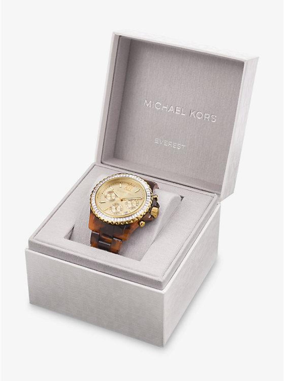 Oversized Everest Pavé Gold-Tone and Tortoiseshell Bio-Based Acetate Watch