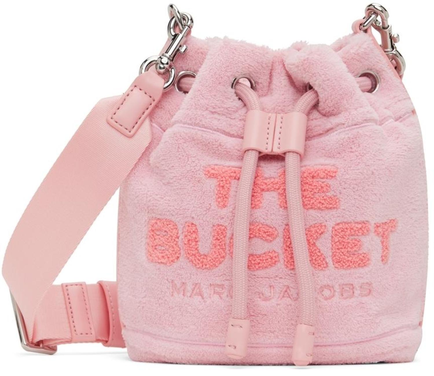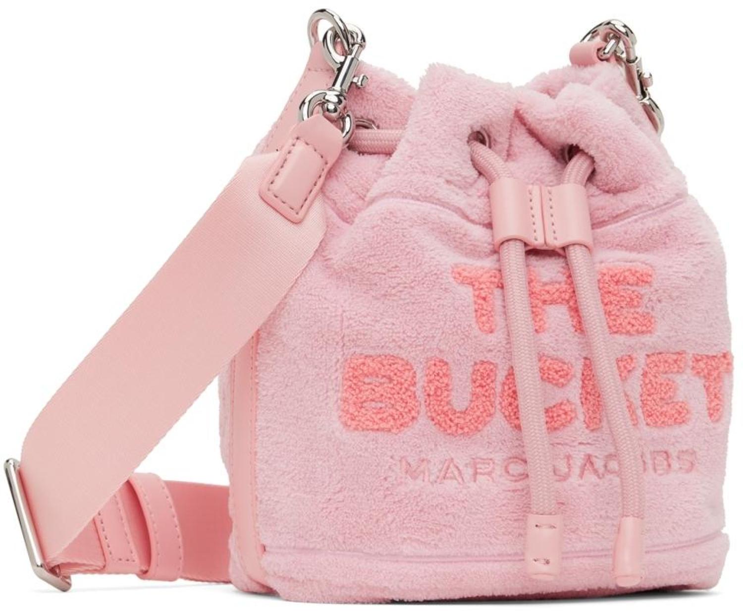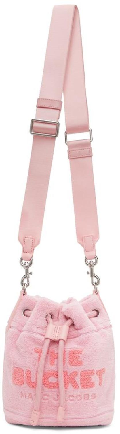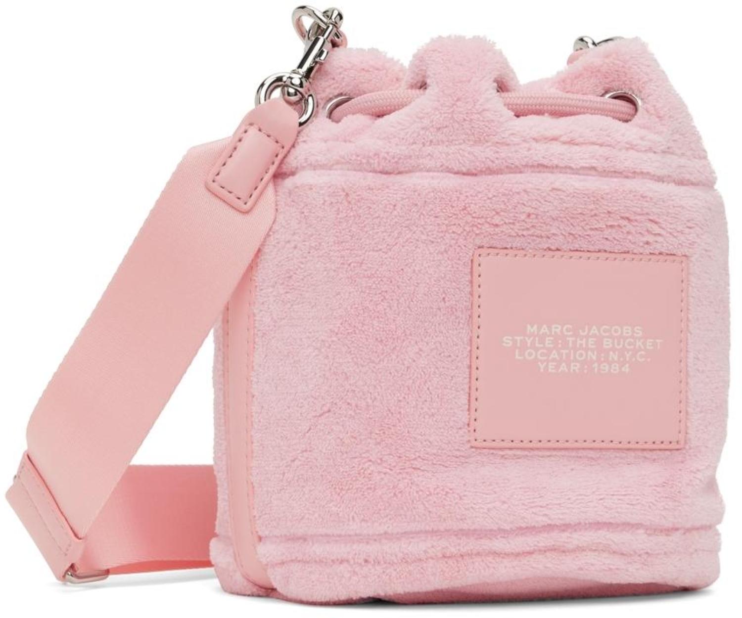 Terrycloth shoulder bag in pink. Faux-leather trim throughout.
