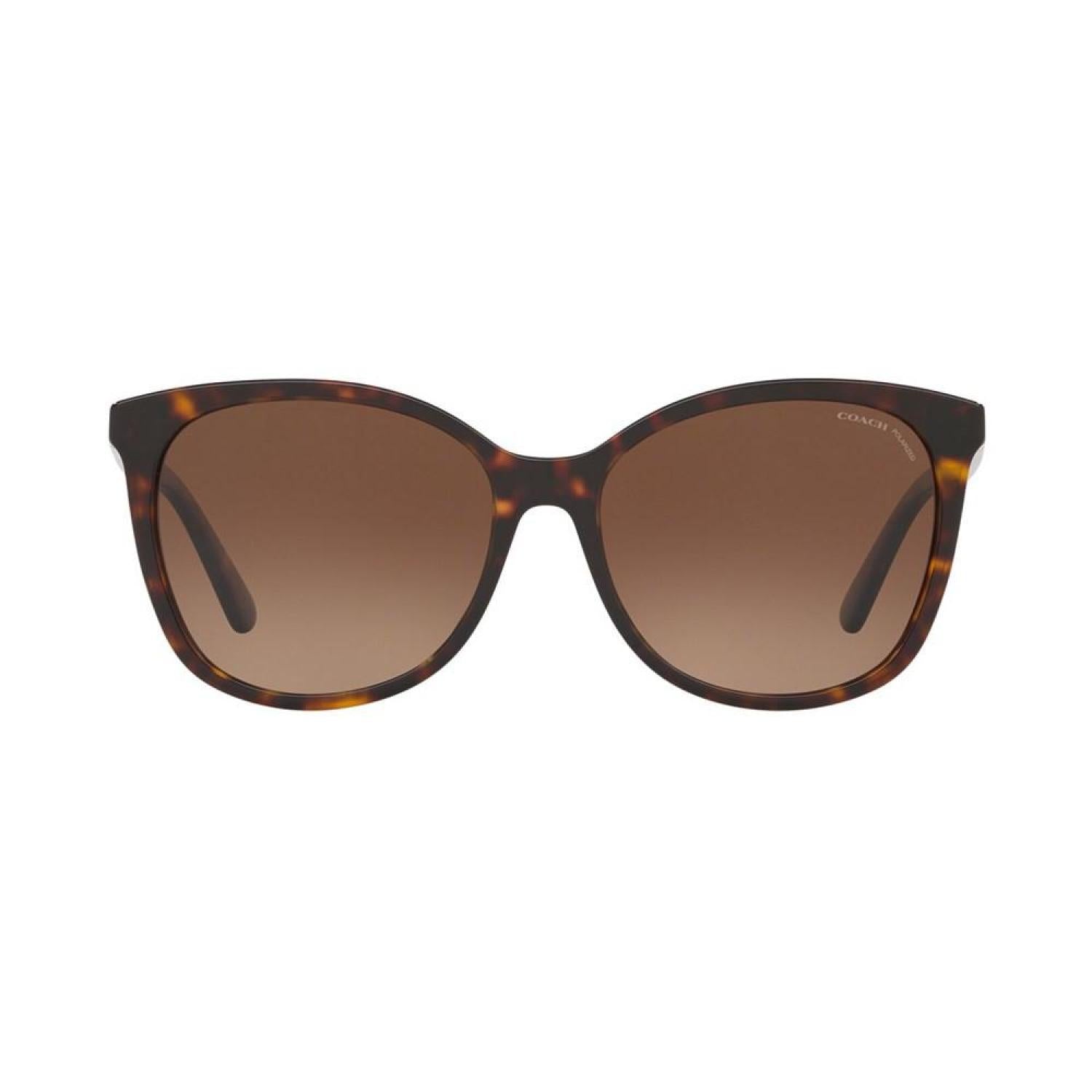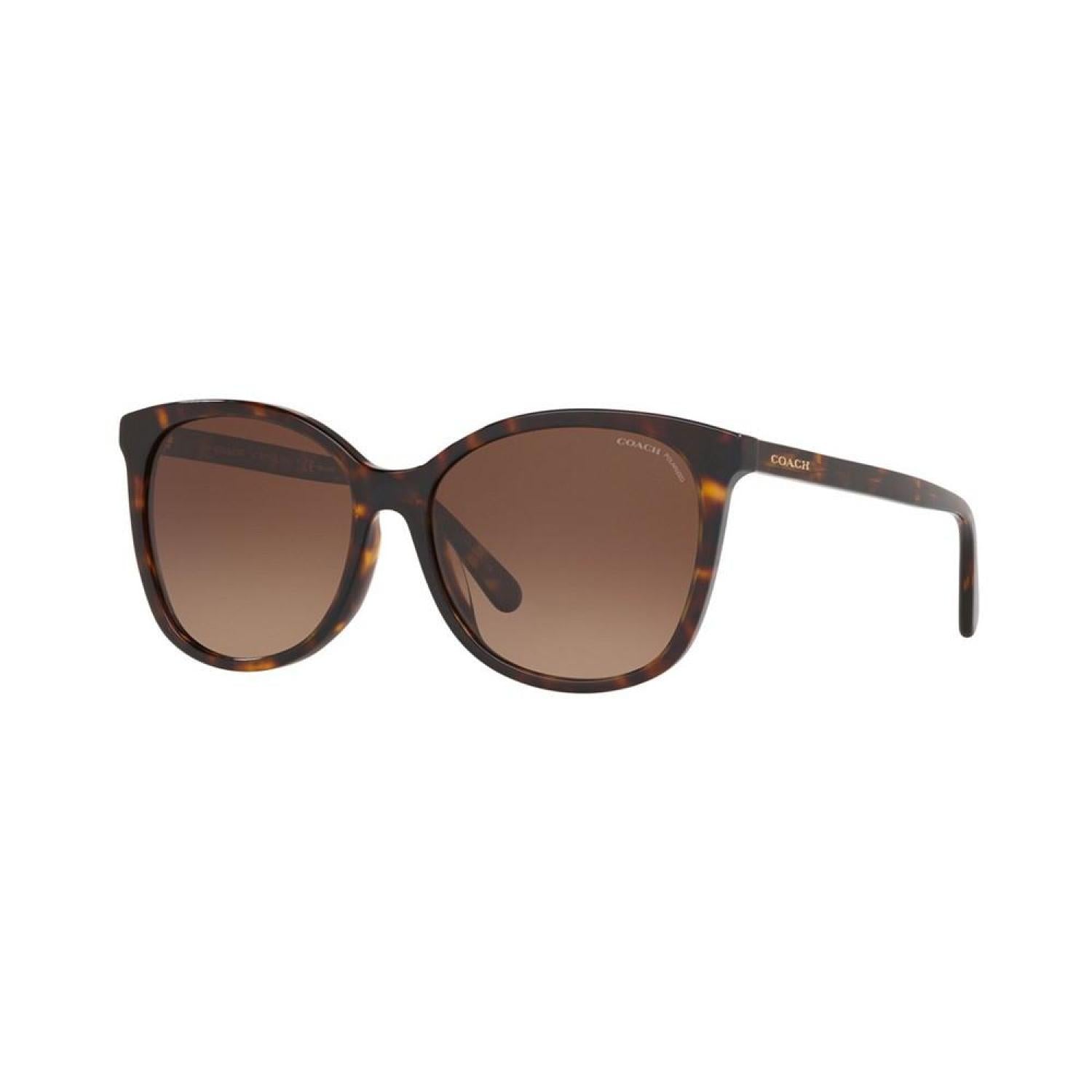 COACH Eyewear is a quality lifestyle accessory offering classic American design and functionality. The COACH Eyewear Collection consists of modern designs with trend-right frames and lens colors developed to match every face tone. Lenses are made from the highest-quality materials, provide 100% UV protection and are optically correct and distortion free. A COACH signature grommet is at the end of each frame's temple tip. Each COACH sunglass style features a logo treatment based on one of four primary logo collections. Gender: FEMALE Frame Style: SQUARE Frame Fit: STANDARD Lens Feature: GRADIENT POLARIZED Lens Material: CR39 Eye/Bridge/Temple: 57/16/140 Case or Microfiber pouch included