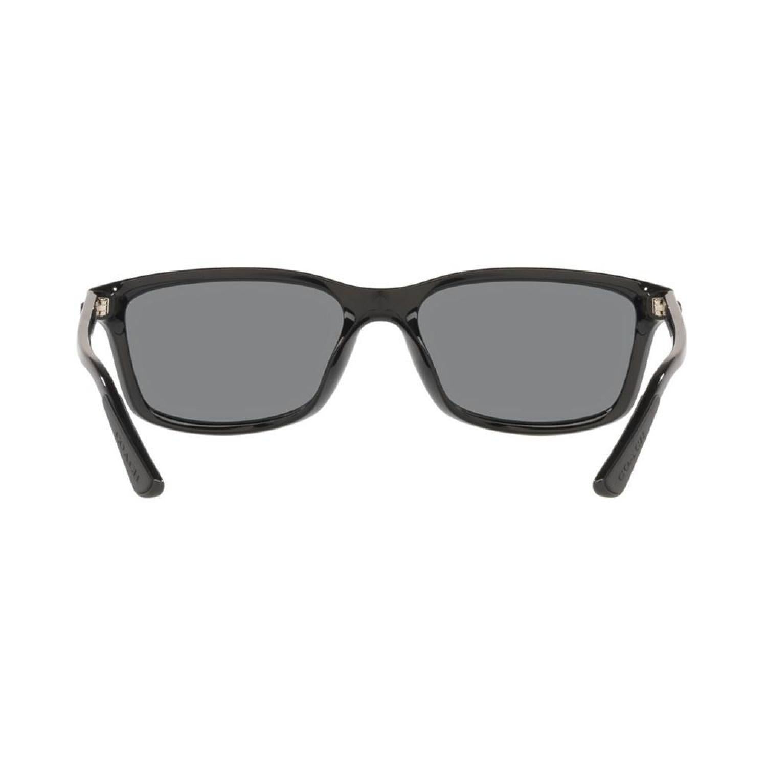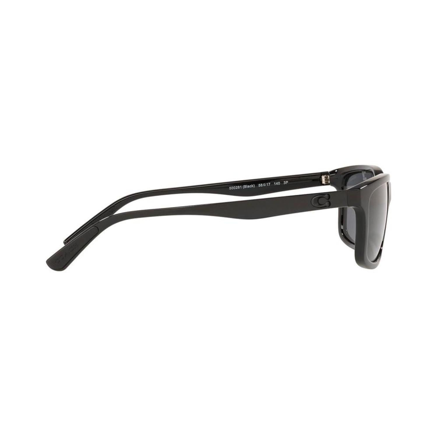 Coach Eyewear is a quality lifestyle accessory offering classic American design and functionality. The Coach Eyewear Collection consists of modern designs with trend-right frames and lens colors developed to match every face tone. Lenses are made from the highest-quality materials, provide 100% UV protection, and are optically correct and distortion free. A Coach signature grommet is at the end of each frame's temple tip. Each Coach sunglass style features a logo treatment based on one of four primary logo collections. Gender: Male Frame Style: Rectangle Frame Fit: Large Lens Feature: Polarized Lens Material: Polycarbonate Eye/Bridge/Temple: 58/17/140 Case or Microfiber pouch included.