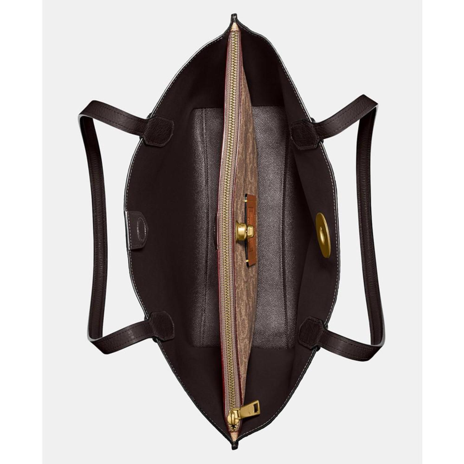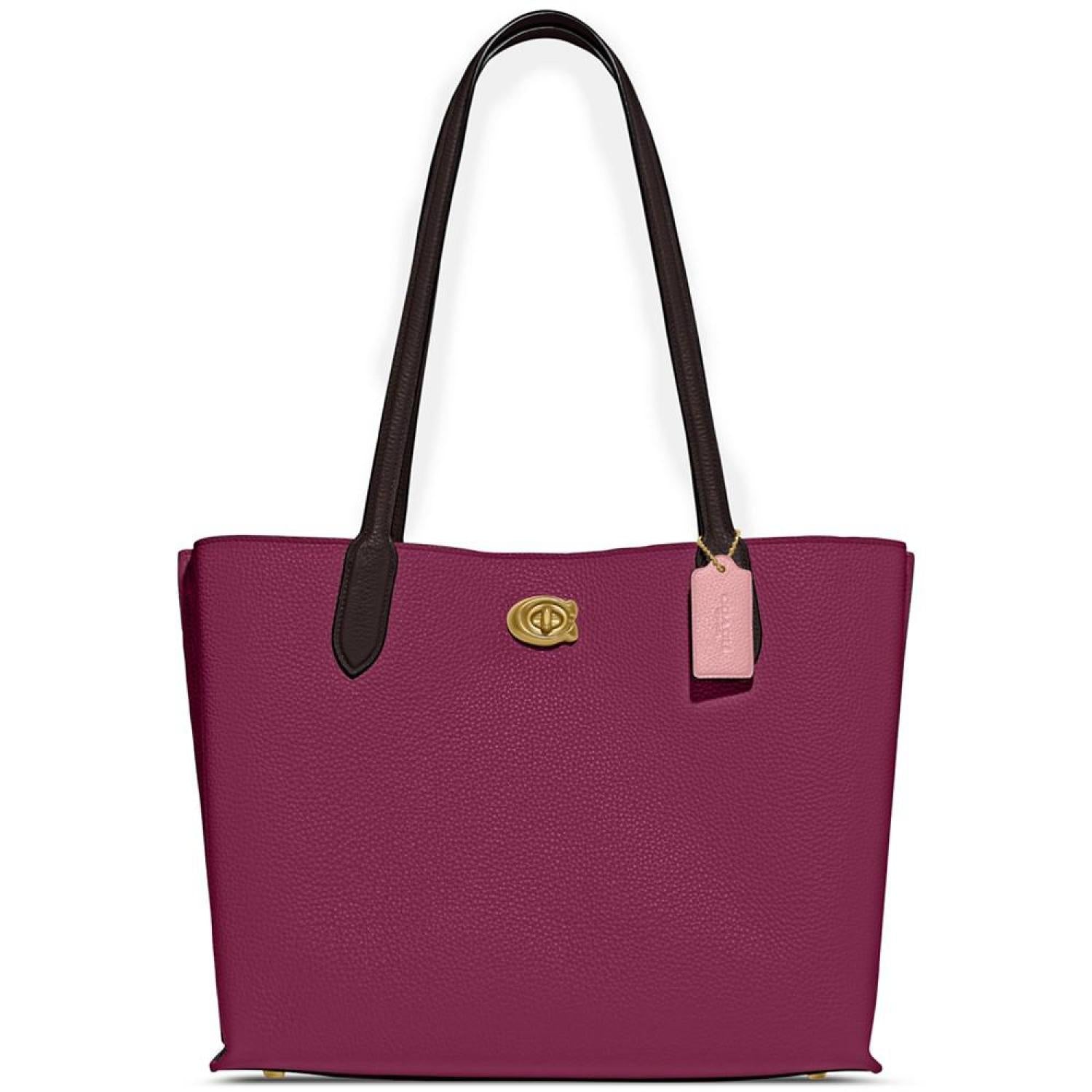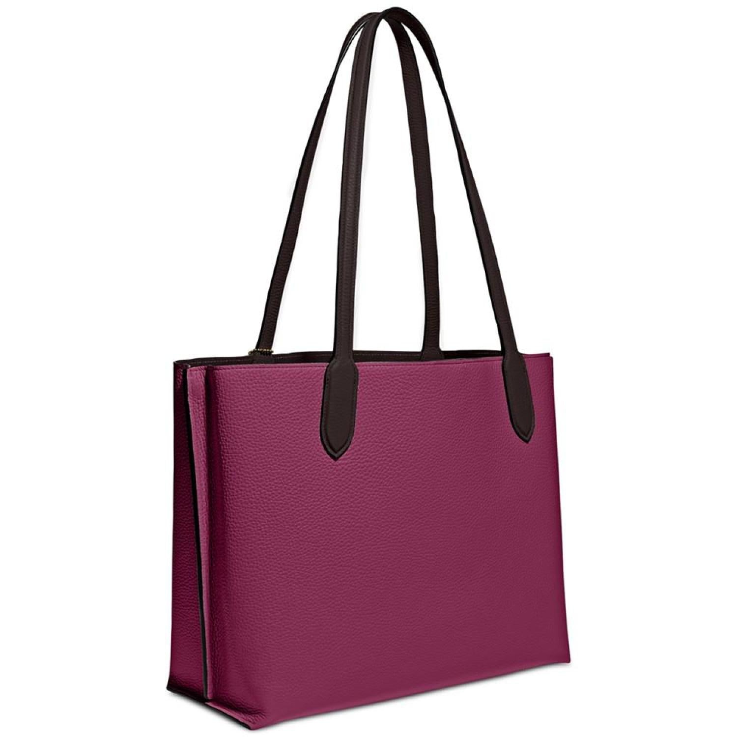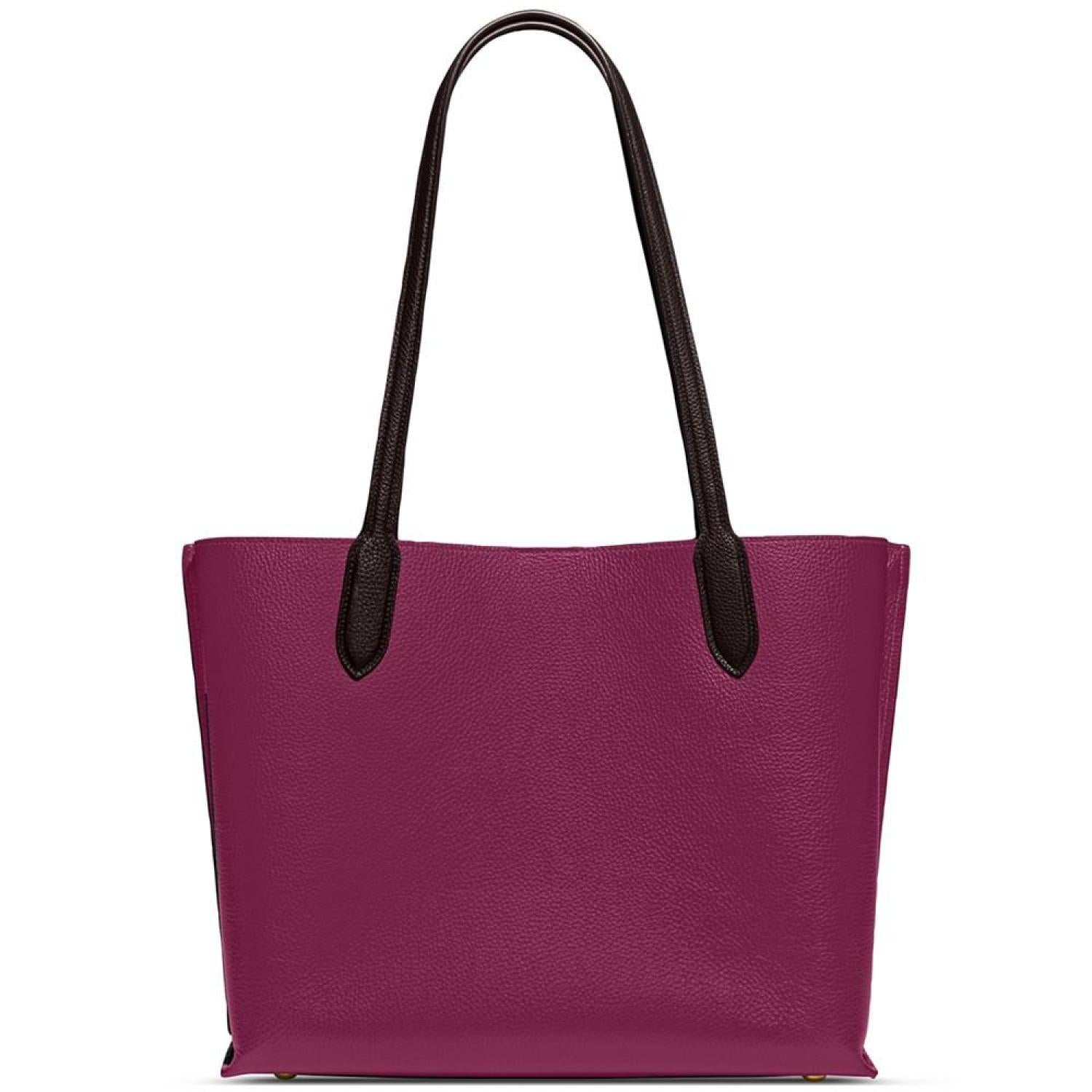 • Not too big, not too small, Willow is the perfect carry-it-all tote with space for all of your day-to-day essentials. Crafted of polished pebble leather, it features two open pockets, a secure center zip compartment and slender shoulder straps designed with a longer drop to fit comfortably over coats. Finished with our Signature turnlock closure, it fits up to a 13" laptop.