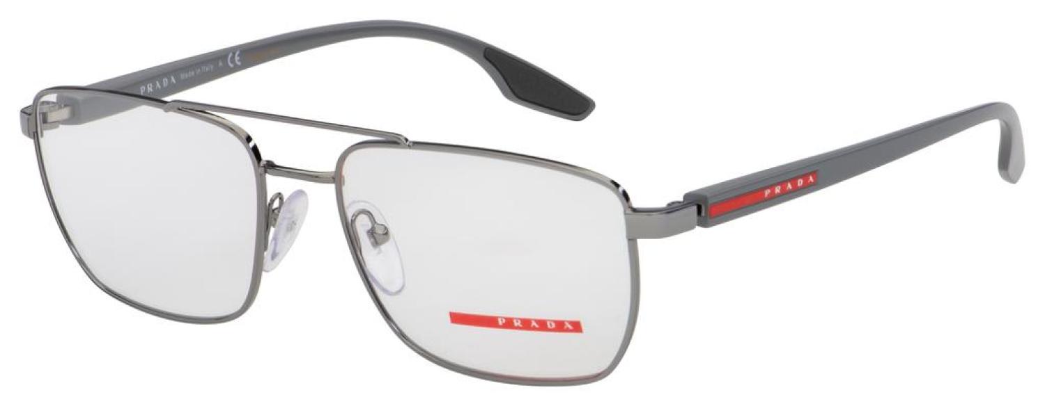 • The Prada men's Opticals measure at 55 mm lens width, 17 mm bridge width and 145 mm arm length. The frame is rectangular-shaped gunmetal metal and plastic. Made in Italy (PS53MV-5AV1O1-55)