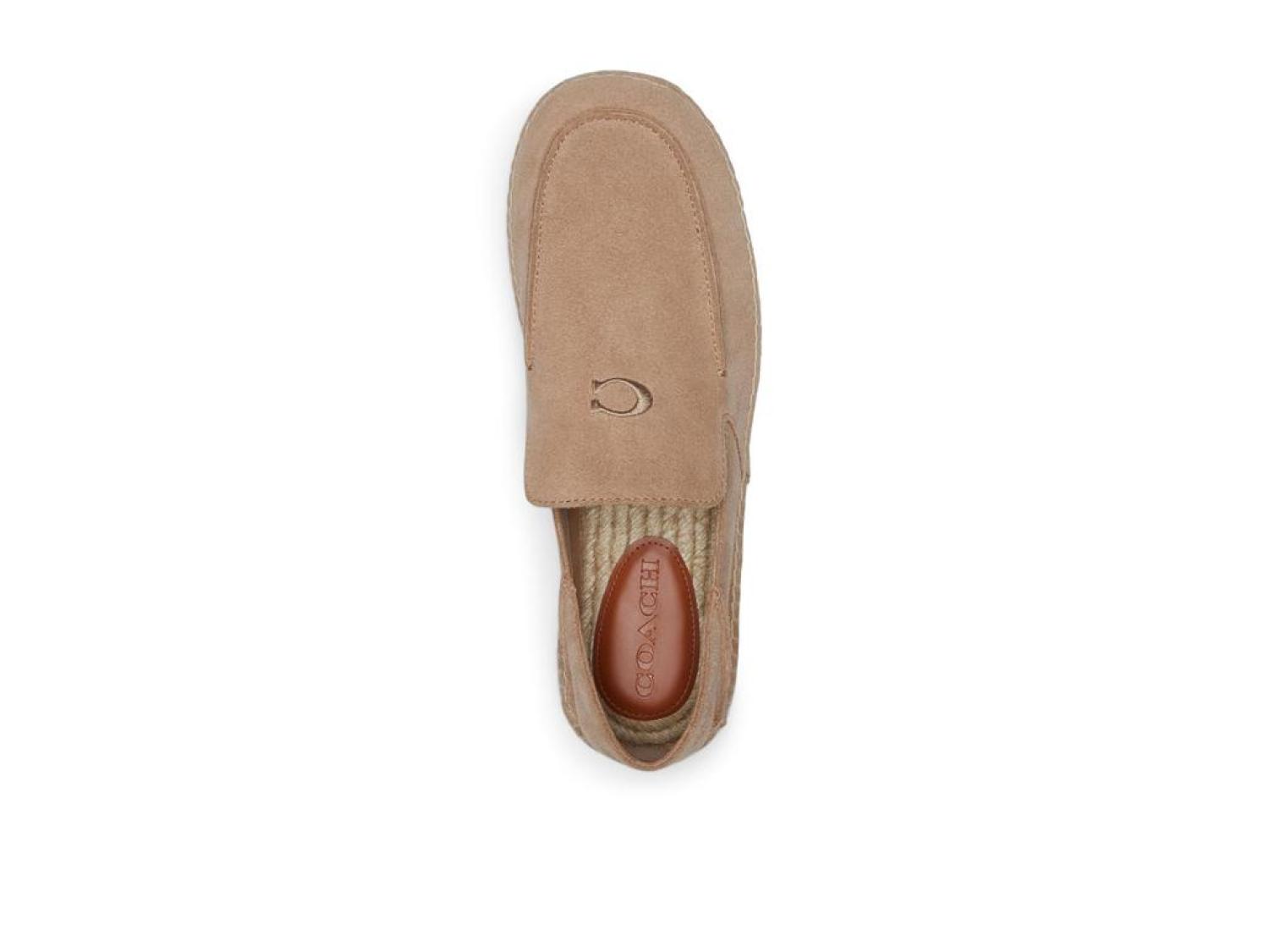 Designed for an elevated warm weather look, the COACH™ Reilly Espadrille Flats highlight a minimal yet chic profile with a suede upper, a man-made lining, and a cushioned, jute-wrapped footbed. The iconic 'C' logo accent on the upper looks attractive while the jute-trimmed midsole brings on a boho appeal to these shoes.
