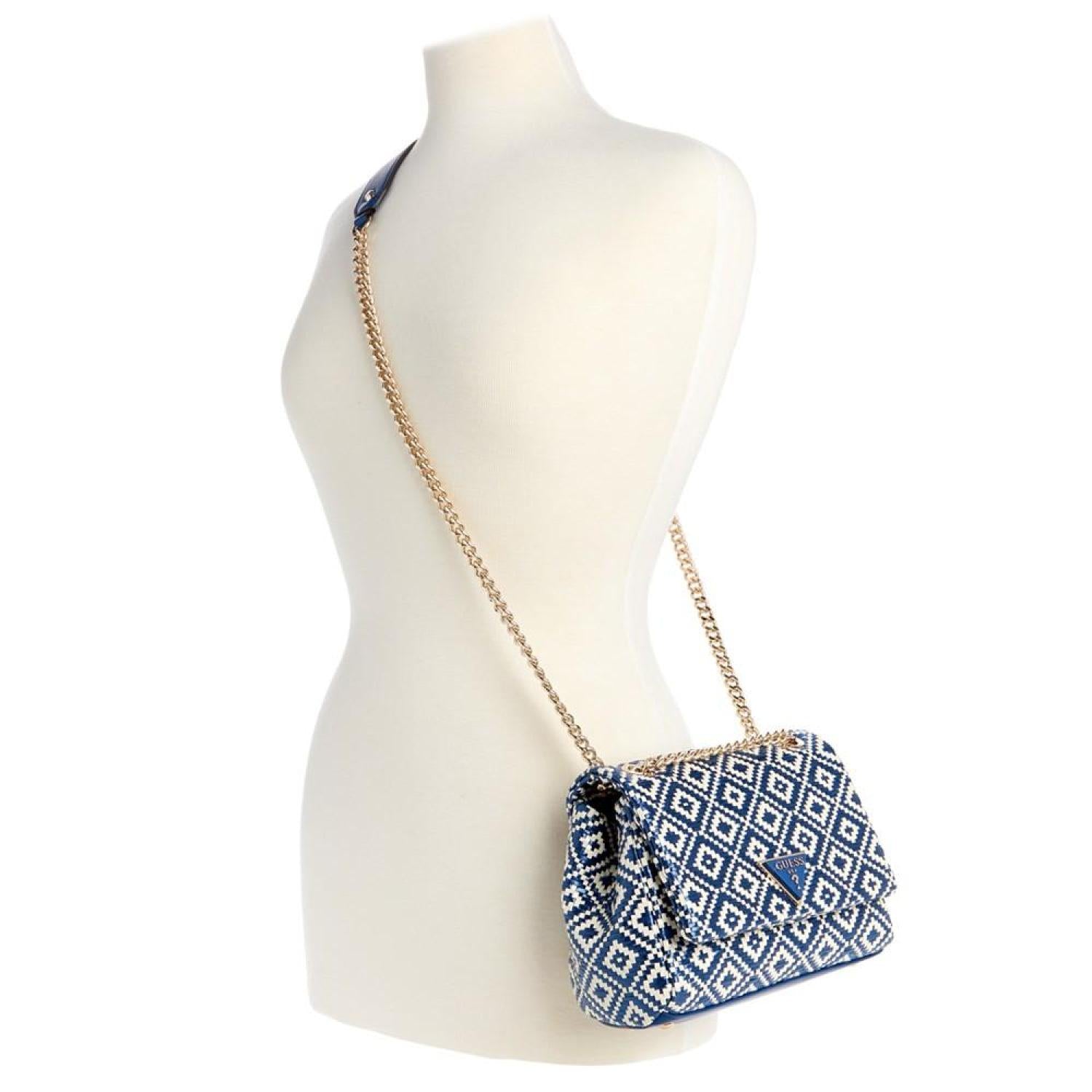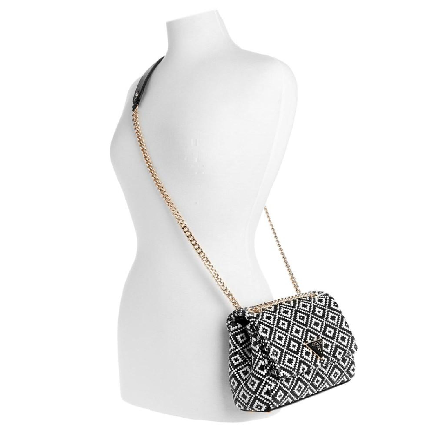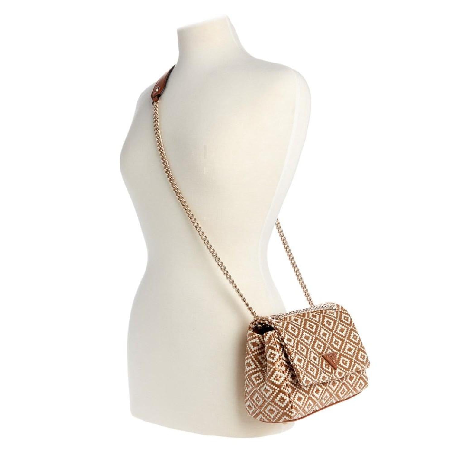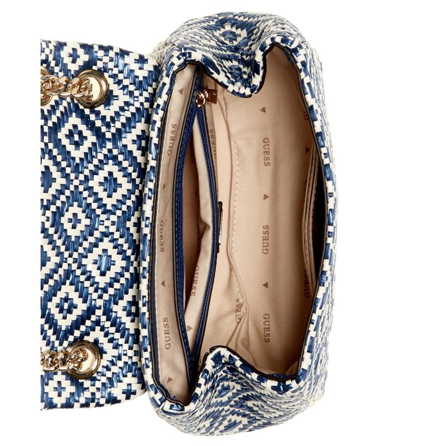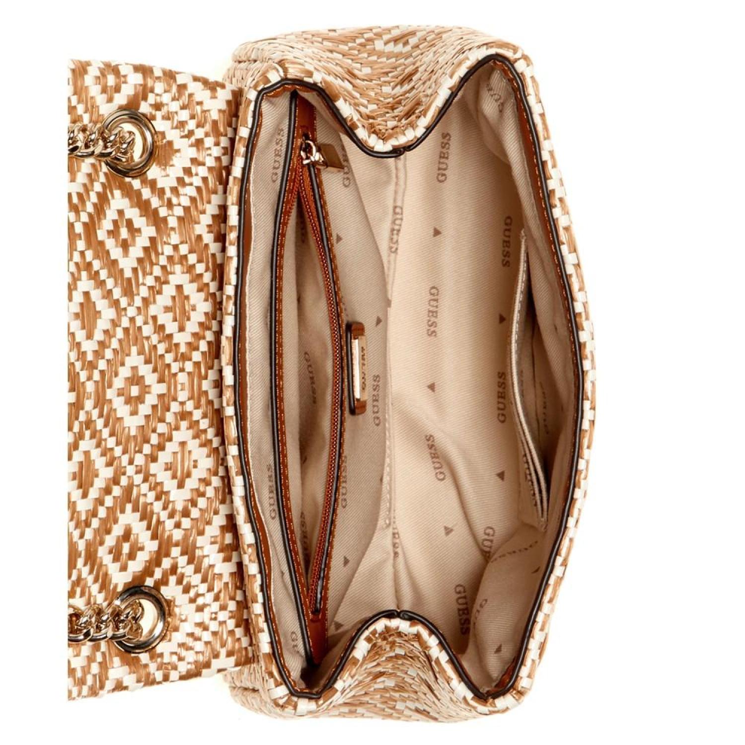 • Realized in a lovely woven texture, this accessory by GUESS can be worn as a shoulder bag or a crossbody thanks to the convertible strap and features an iconic logo plaque at the front for a polished finish.