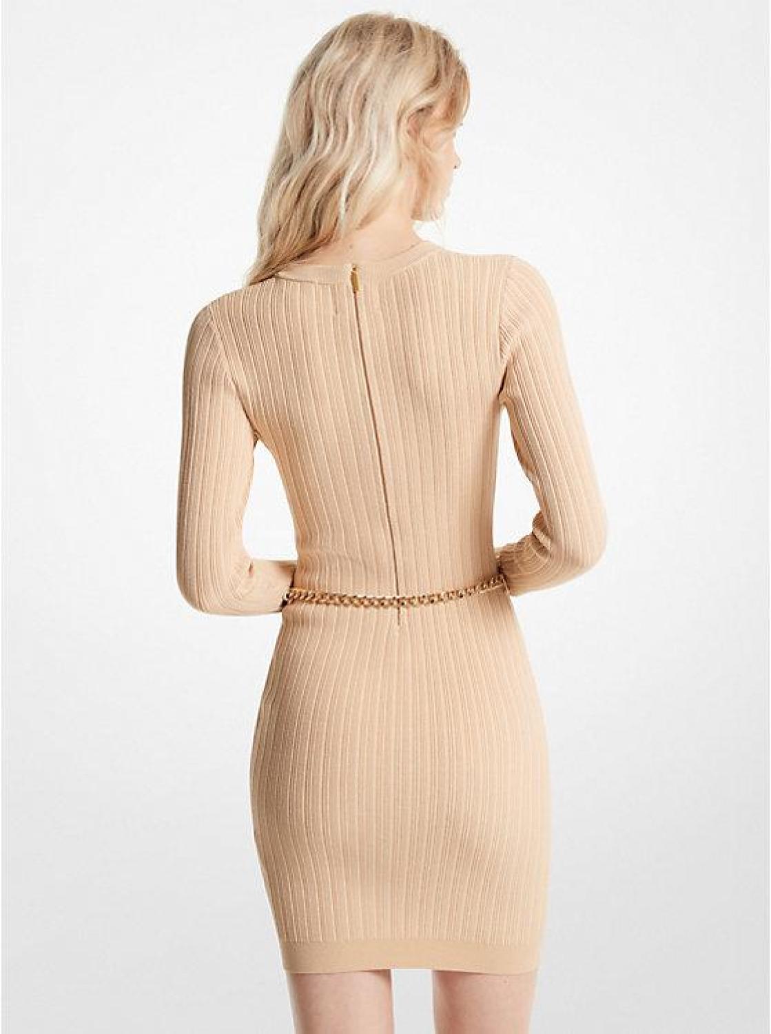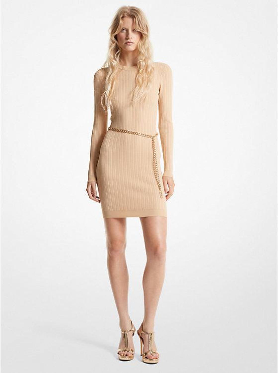 A seasonless style staple, this flattering sweater dress is cut for a second-skin fit. It’s crafted from a comfortable, lightweight stretch viscose for all-day ease, and designed with ribbed detailing throughout for tactile interest. Style it with the detachable chain-link belt to define the waist. • Dress • Stretch viscose • 82% recycled viscose/18% viscose • Zip fastening • Machine wash • Imported • Model is 5’10”/178 cm wearing size XS • Dress • Stretch viscose • 82% recycled viscose/18% viscose • Zip fastening • Machine wash • Imported • Model is 5’10”/178 cm wearing size XS