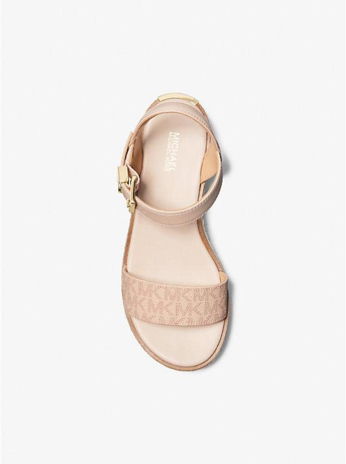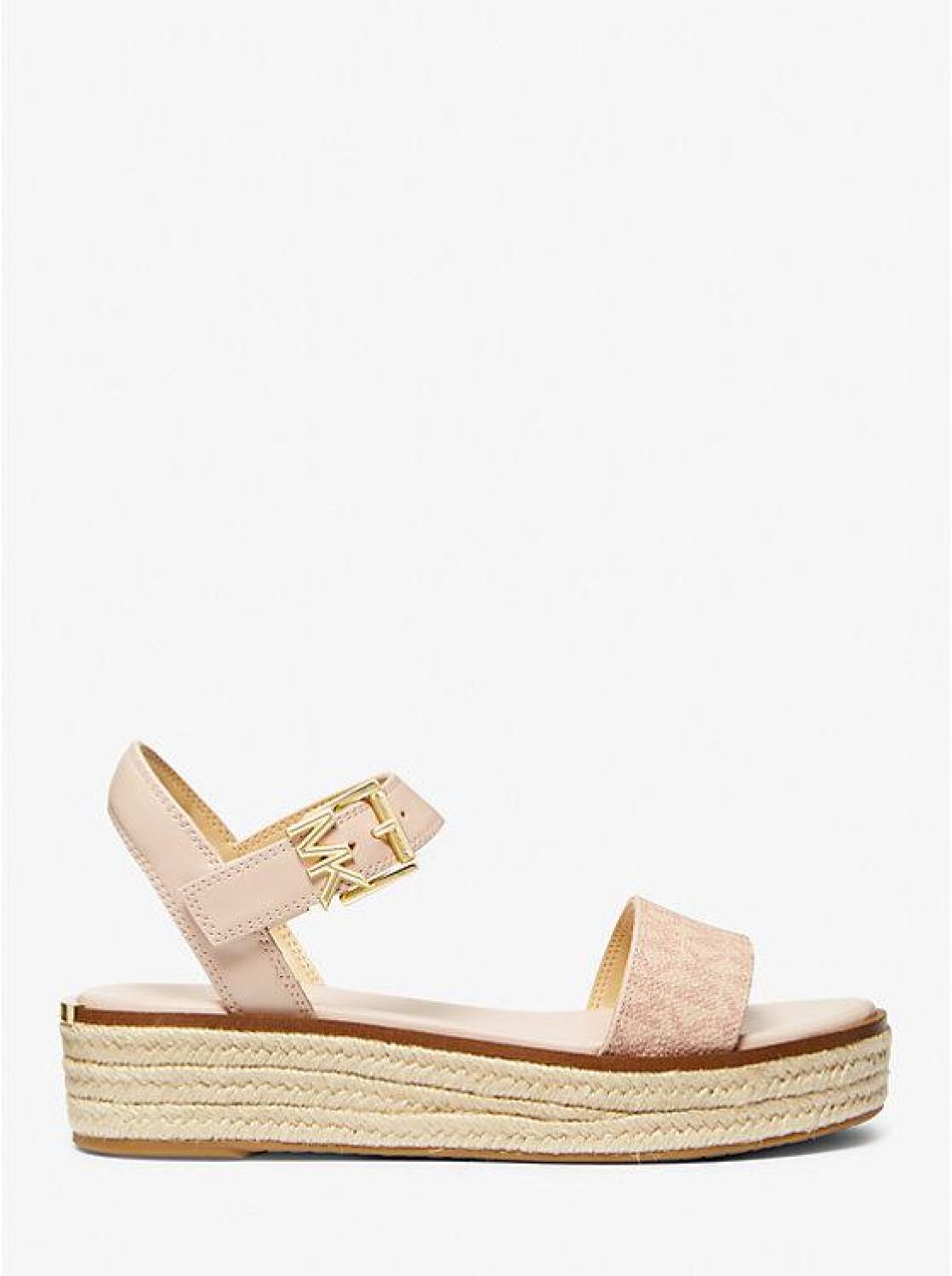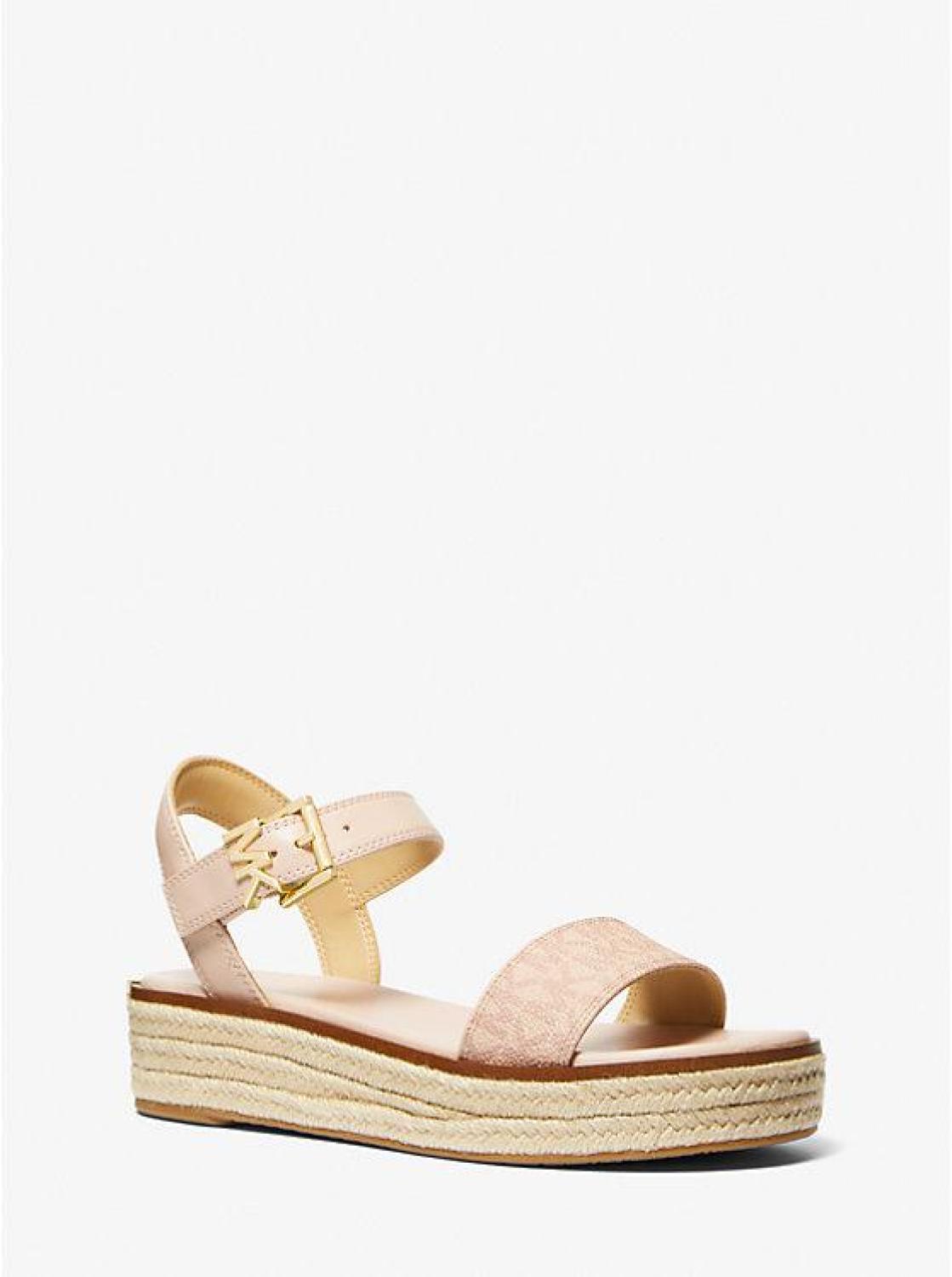 Strut into summer with the perfect shoe for every occasion. Polished with our iconic “MK” initials, the Richie sandal is crafted from Signature Logo-print canvas with smooth panels and set on a woven jute platform for a bohemian twist. We love how the ankle strap and chunky sole combine to create the illusion of longer legs. • Sandal • Polyurethane/logo-print canvas • 100% polyurethane • Trim: 89.4% coated canvas/9.6% polyester /1% polyurethane • Lining: polyurethane blend • Sole: rubber • Open toe • Buckle fastening • Heel height: 1.5" • Heel type: jute • Imported • Sandal • Polyurethane/logo-print canvas • 100% polyurethane • Trim: 89.4% coated canvas/9.6% polyester /1% polyurethane • Lining: polyurethane blend • Sole: rubber • Open toe • Buckle fastening • Heel height: 1.5" • Heel type: jute • Imported