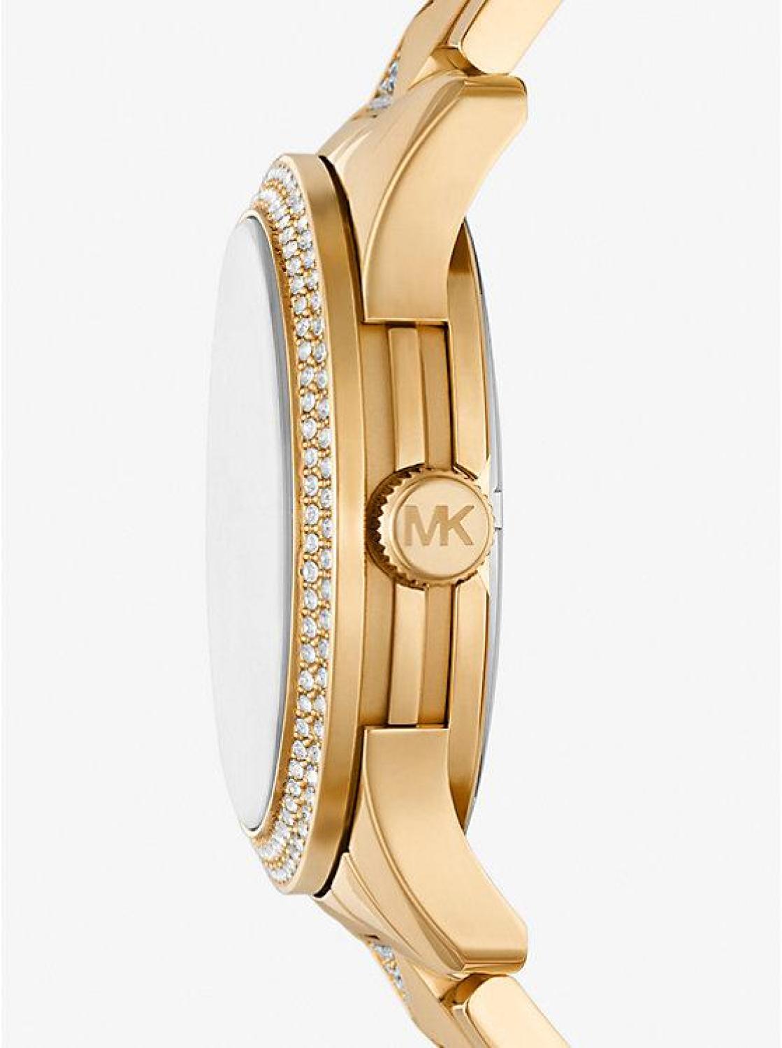 This Runway watch is a dazzling interpretation of our perennial favorite. Crafted from gold-tone stainless steel, it features a malachite dial illuminated by pavé accents on the bezel and bracelet. Reach for it to give your evening look an extra hit of color. • Watch • Stainless steel • Gold-tone hardware • Mid-sized • 38mm case • Malachite dial • Pavé topring and center links • Quartz/chronographic movement • Clasp fastening • Water resistant up to 10 ATM • 2-year warranty • Imported • Watch • Stainless steel • Gold-tone hardware • Mid-sized • 38mm case • Malachite dial • Pavé topring and center links • Quartz/chronographic movement • Clasp fastening • Water resistant up to 10 ATM • 2-year warranty • Imported