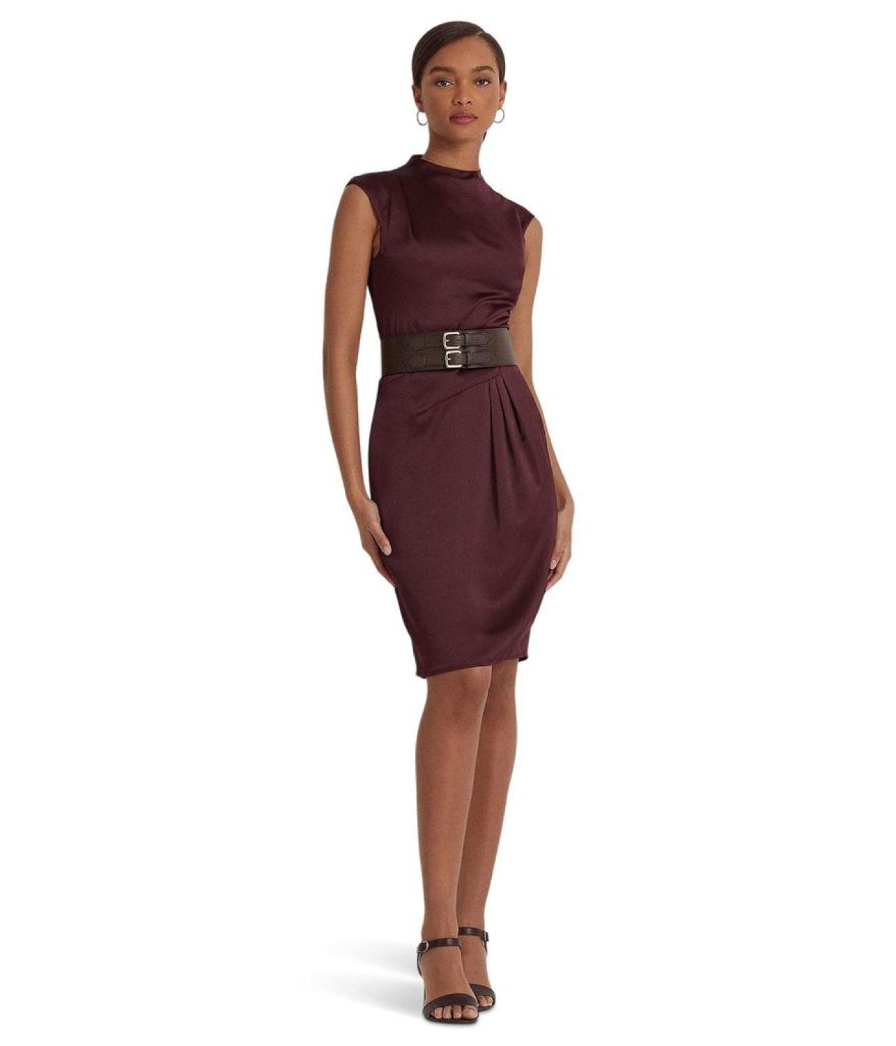 Take your partywear fashion a notch up by wearing LAUREN Ralph Lauren® Satin Charmeuse Mock Neck Cocktail Dress.