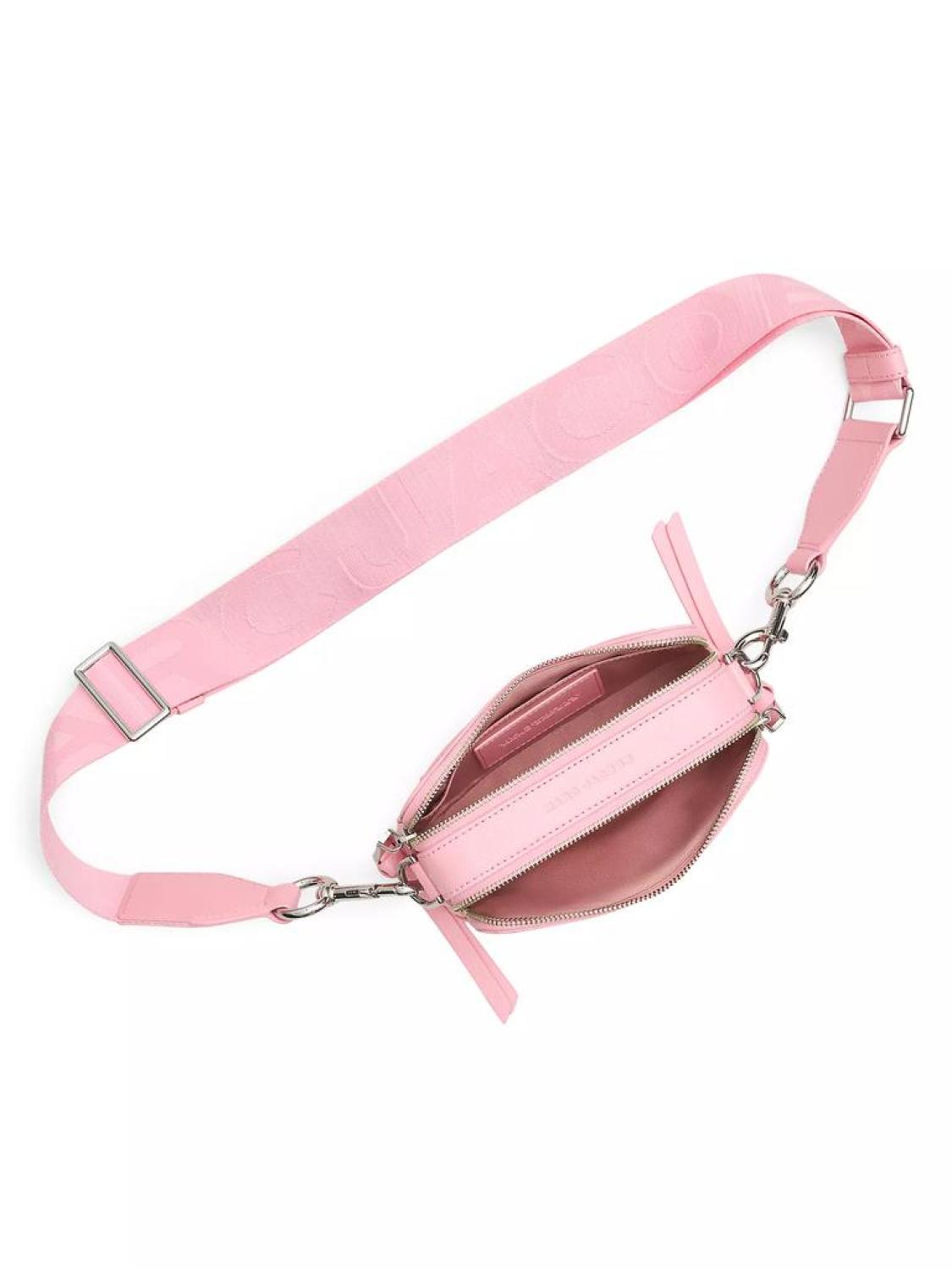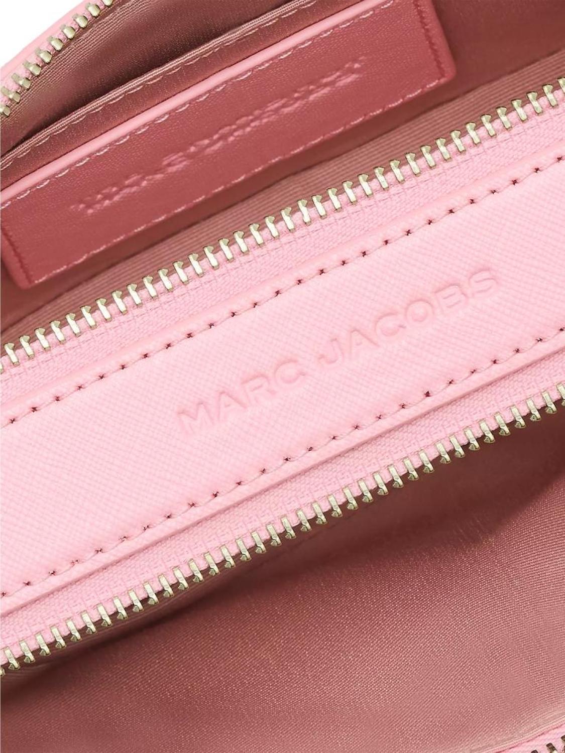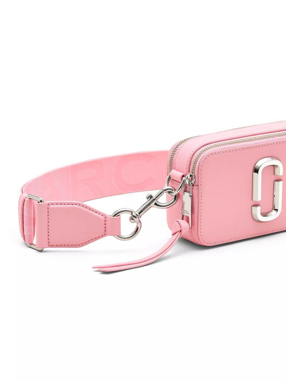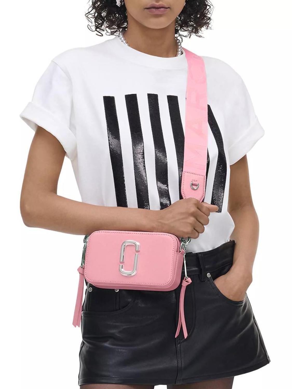 • Marc Jacobs' The Solid Snapshot is a versatile crossbody bag crafted of leather. It features a removable and adjustable webbing strap, dual top zippers, and both external and internal slip pockets for easy organization.