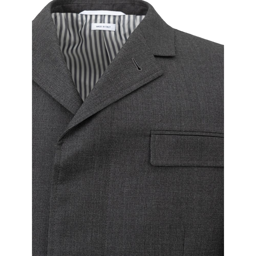 Elevate your wardrobe with this sophisticated Gray Wool Jacket, meticulously crafted to embody refinement and style. A quintessential piece by Thom Browne, this jacket boasts an unmatched blend of classic design and modern sophistication, making it an essential for the discerning gentleman.