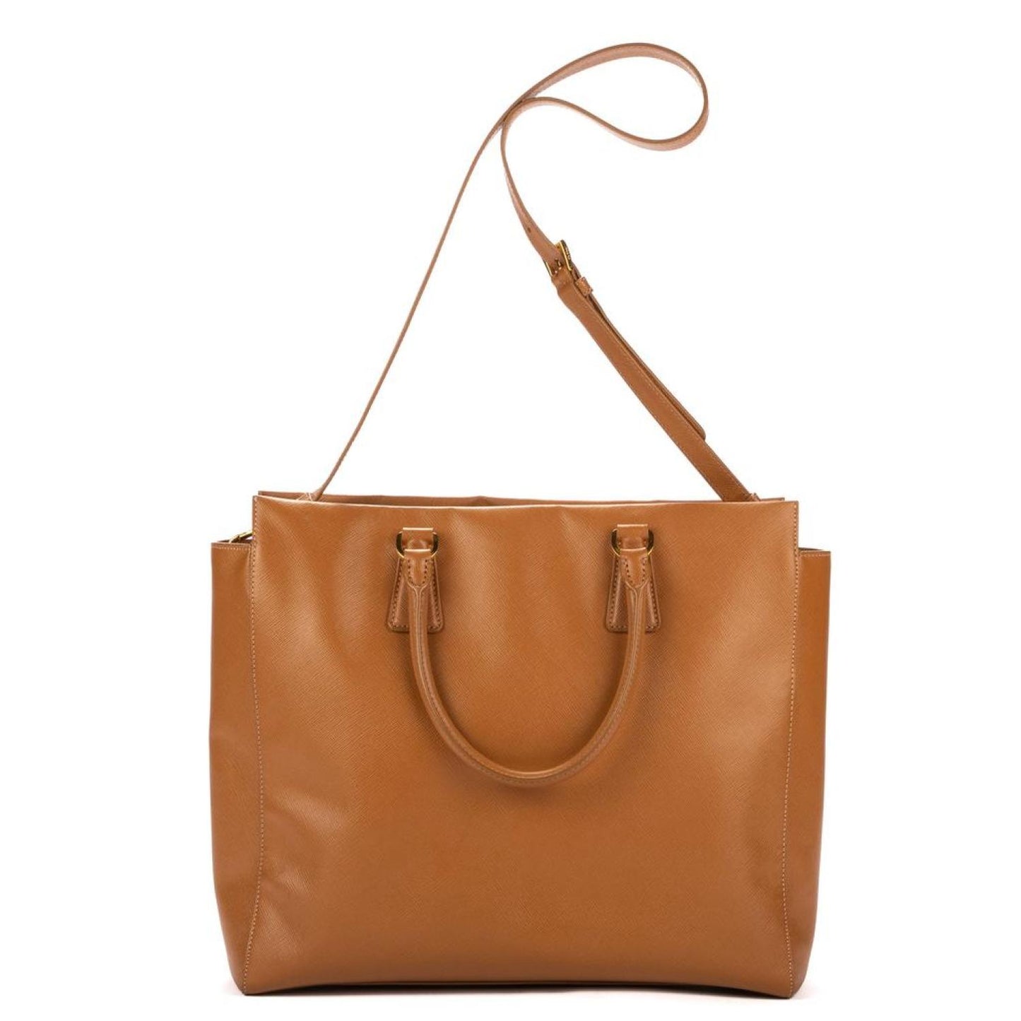 Prada Handbag in Caramel Saffiano leather and Gold hardware. Dimensions - 33*29*9cm. Serial number - N/A. Inclusions - Key holder.