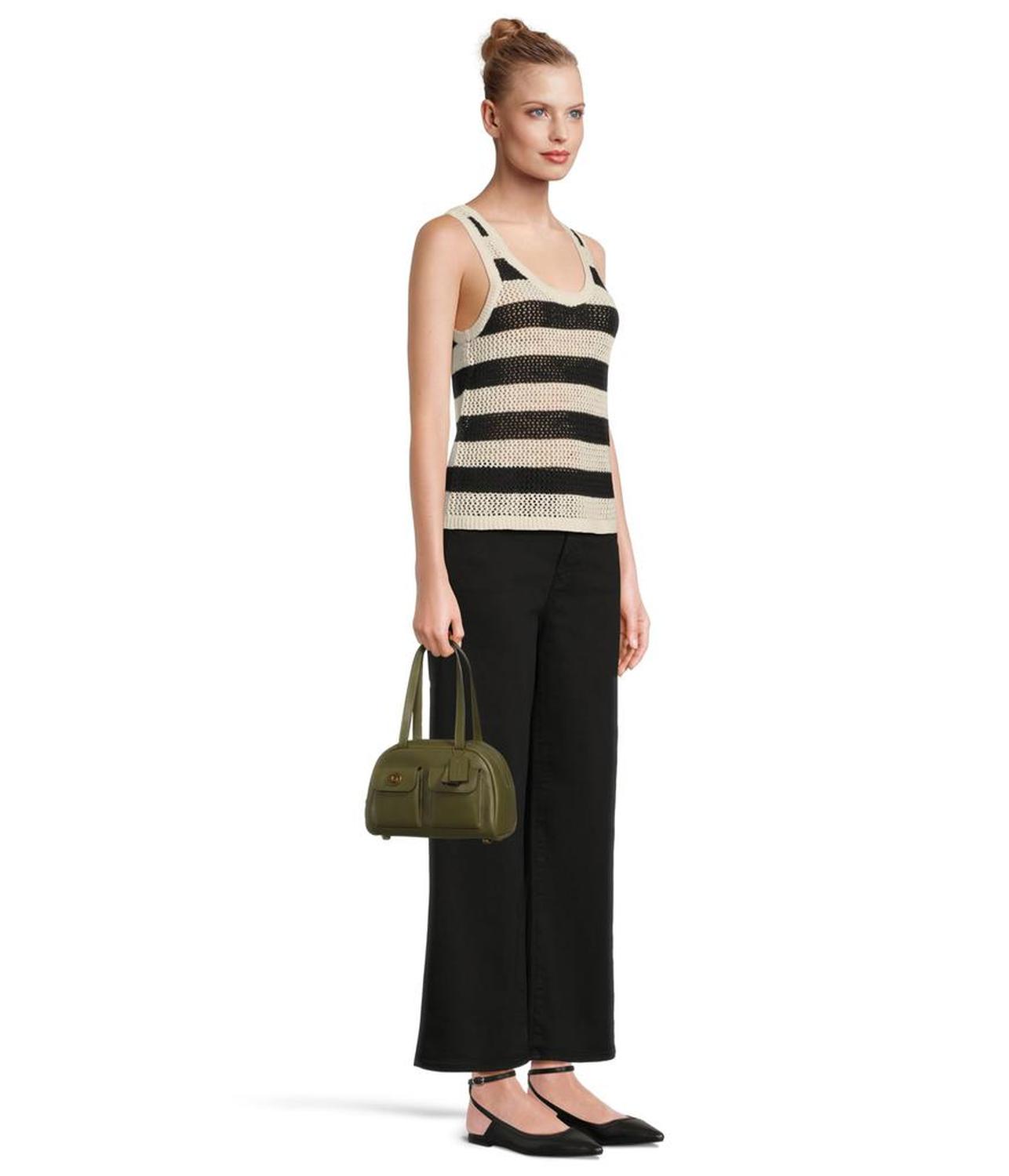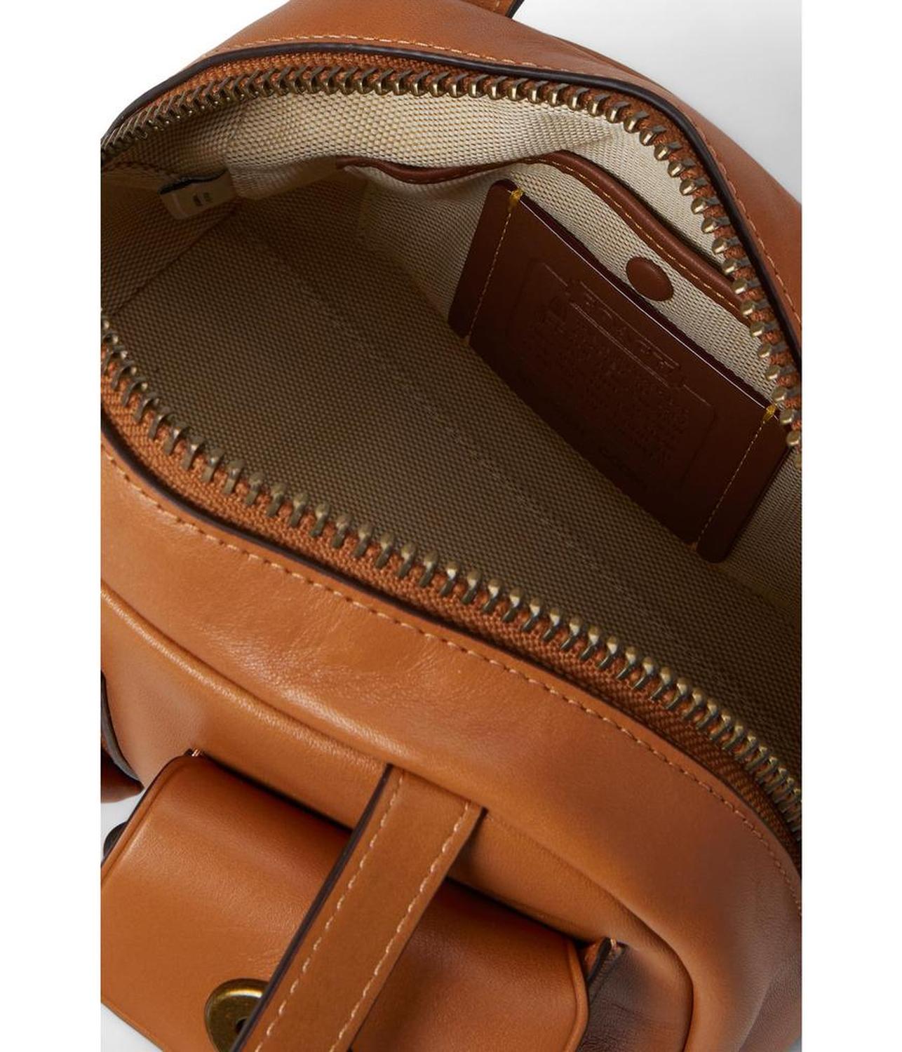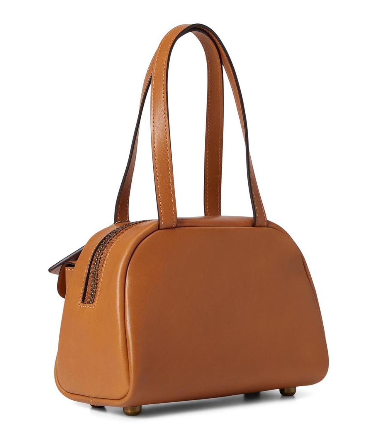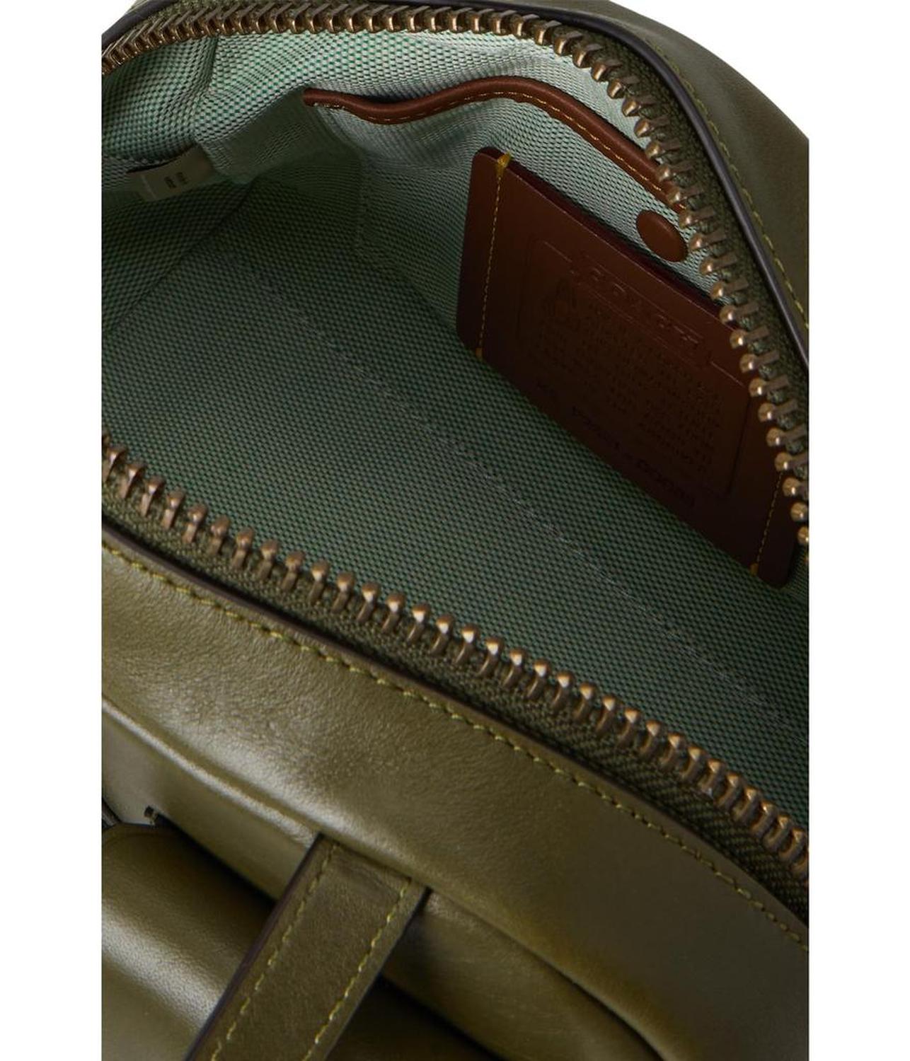 The COACH™ Twin Turnlock Bag 20 is a hand-carry bag with four protective feet at the base for convenient carrying. Made from waxed smooth leather, this luggage bag is designed with dual grab handles and a zippered top closure. With its two outside turnlock pockets, an interior compartment, and an inside snap pocket, this leather bag offers enough space for all your essentials.