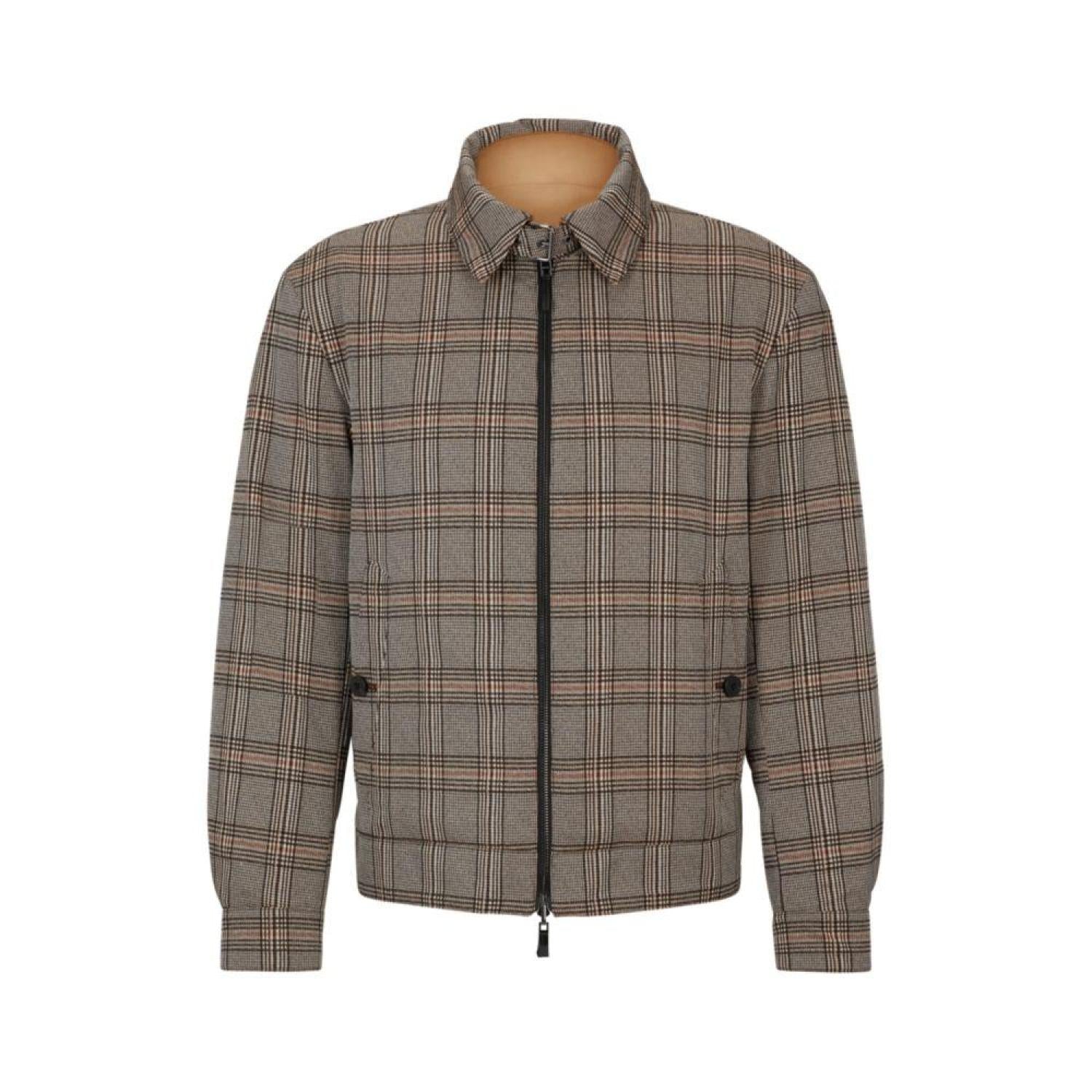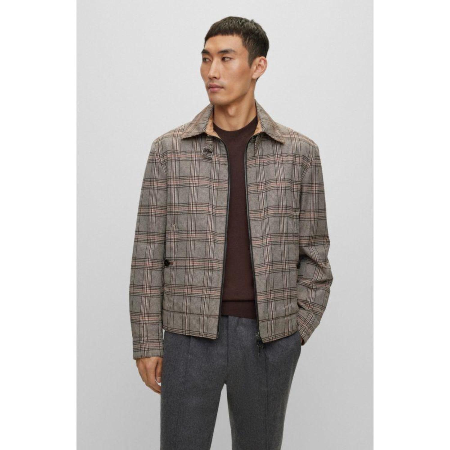 A regular-fit reversible jacket by BOSS Menswear, crafted in water-repellent fabric featuring one plain side and a check pattern on the other.