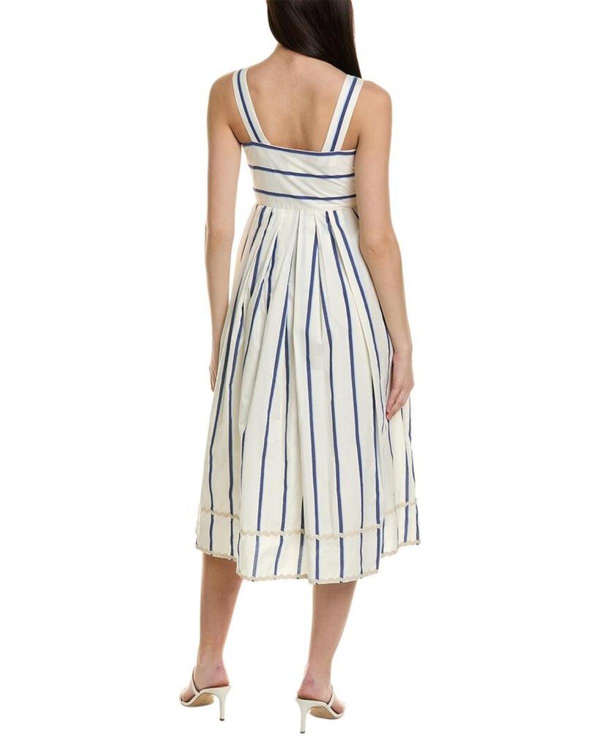 Elevate your weekend look with the Weekend Max Mara Giano Silk-Blend Midi Dress. This sophisticated piece features a white and blue stripe pattern with a pleated skirt and convenient side seam pockets. The dress measures approximately 46.5 inches from shoulder to hem and has a left side seam zipper for easy wear. Made from a blend of 84% cotton and 16% silk, with a 100% cotton lining, this dress is both luxurious and comfortable. Dry clean only. Imported. Model is 5'11 and is wearing a size 2. Perfect for any casual or elegant occasion.
