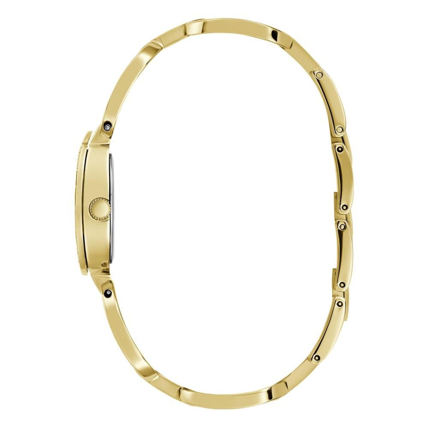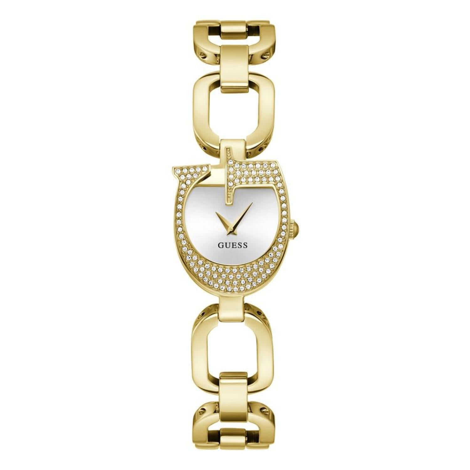 • A new sleek jewelry logo look featuring an innovative G-shaped glitzed out case on a fresh new chain bracelet. Adjustable G-links make this style easy to size and pairs well with other jewelry. Style #GW0683L2.