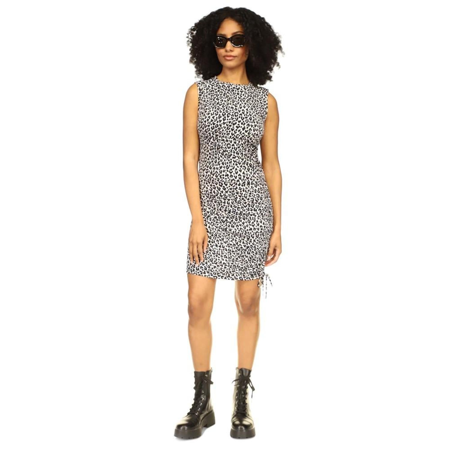 Flaunt your style with this women's animal print dress featuring adjustable side ruching from MICHAEL Michael Kors, perfect for customizing your look while accentuating your curves with a touch of wild elegance. Approx. 35" long from high point of shoulder to hem Round neckline Back zip closure Sleeveless Adjustable side ruching Unlined Polyester, elastane Machine wash Imported