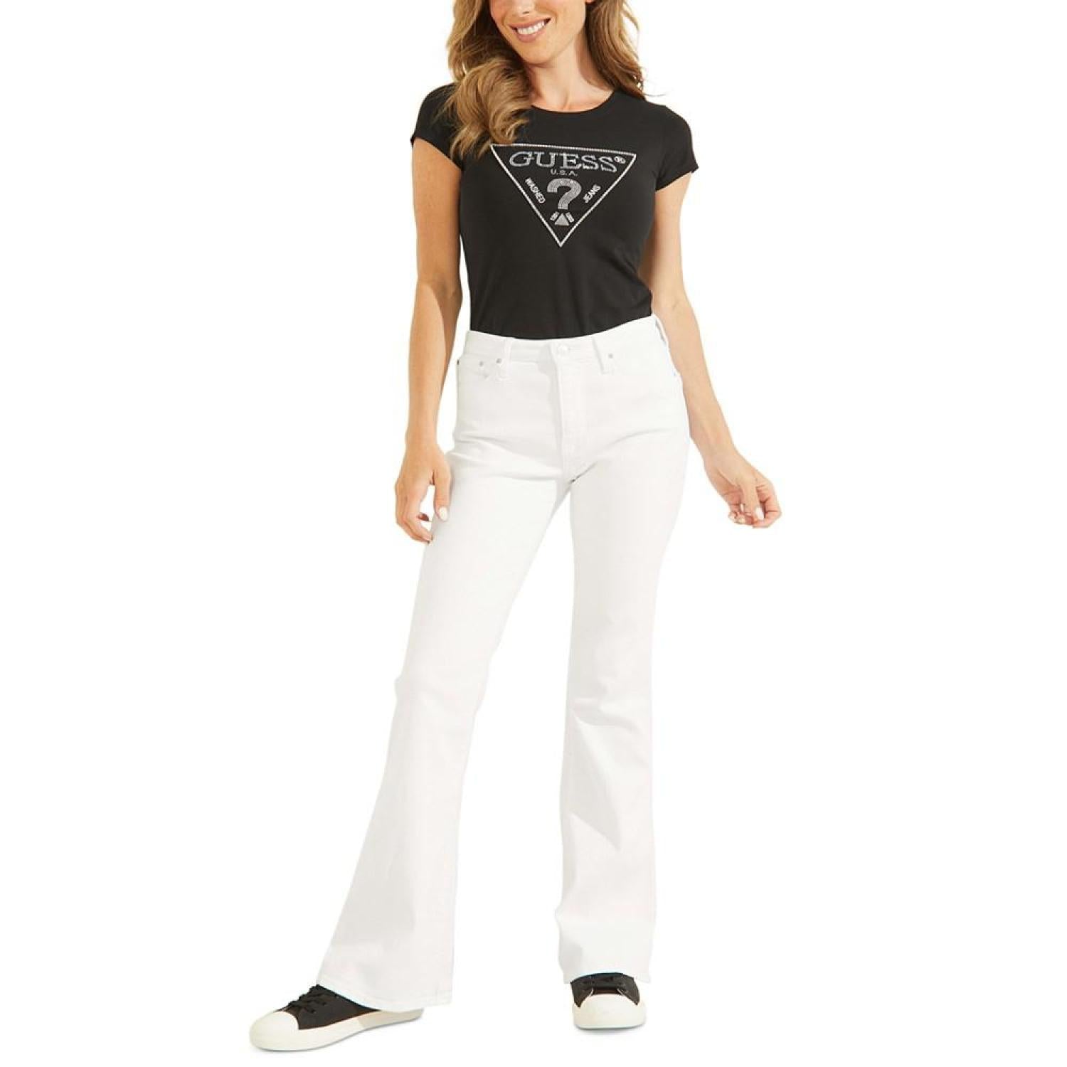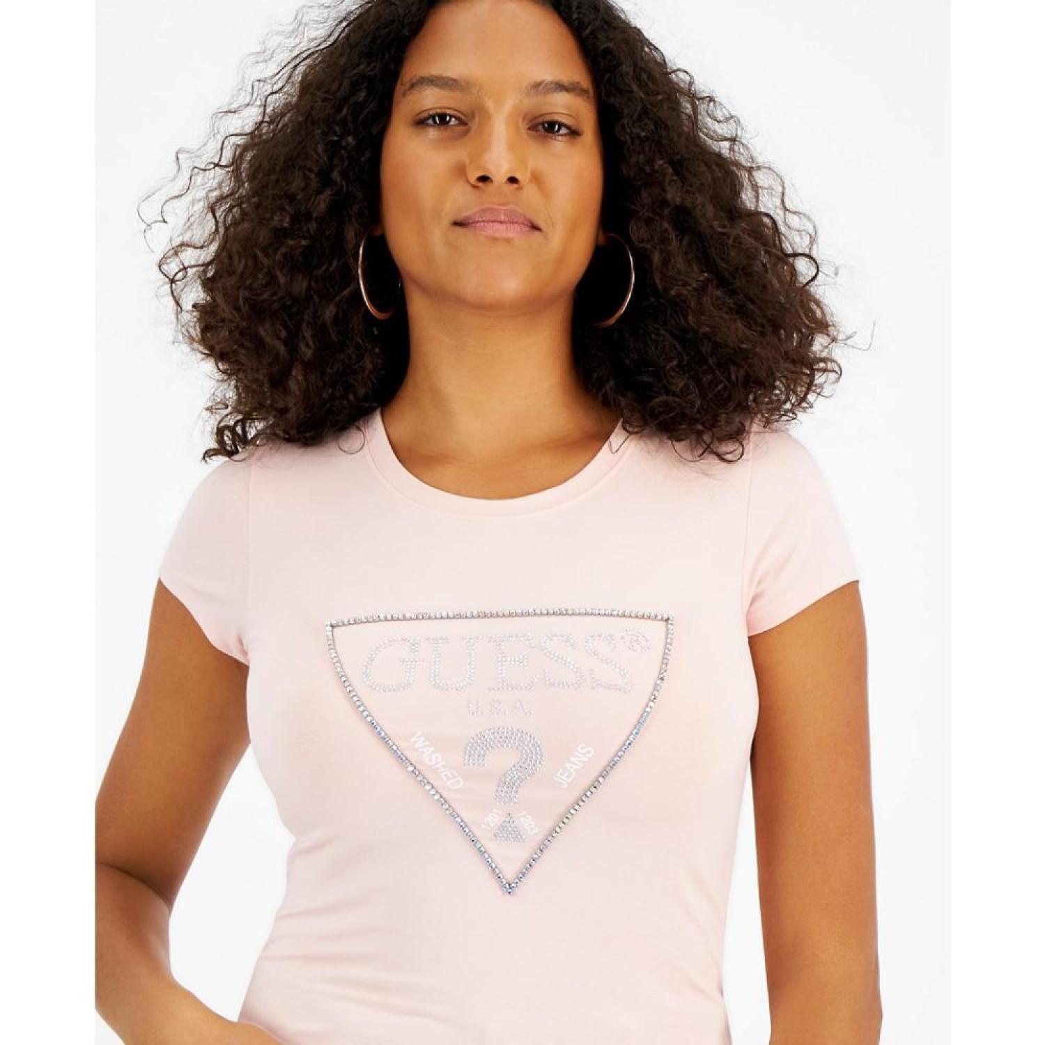 • Add a splash of glamour with this jersey tee featuring a dazzling triangle logo, short sleeves and a crew neckline.