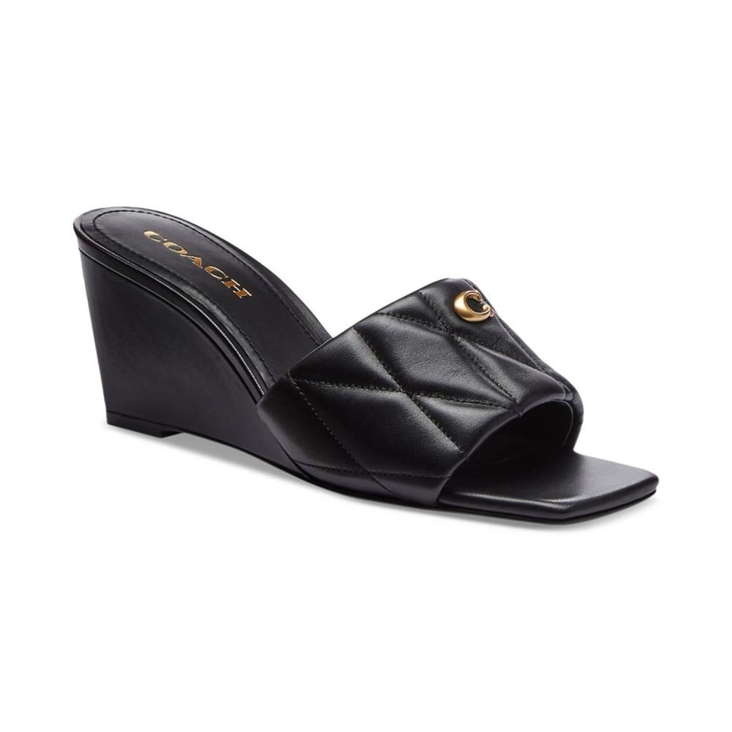 Crafted of quilted leather, COACH's Emma wedge sandals feature a comfortable, elevated heel.