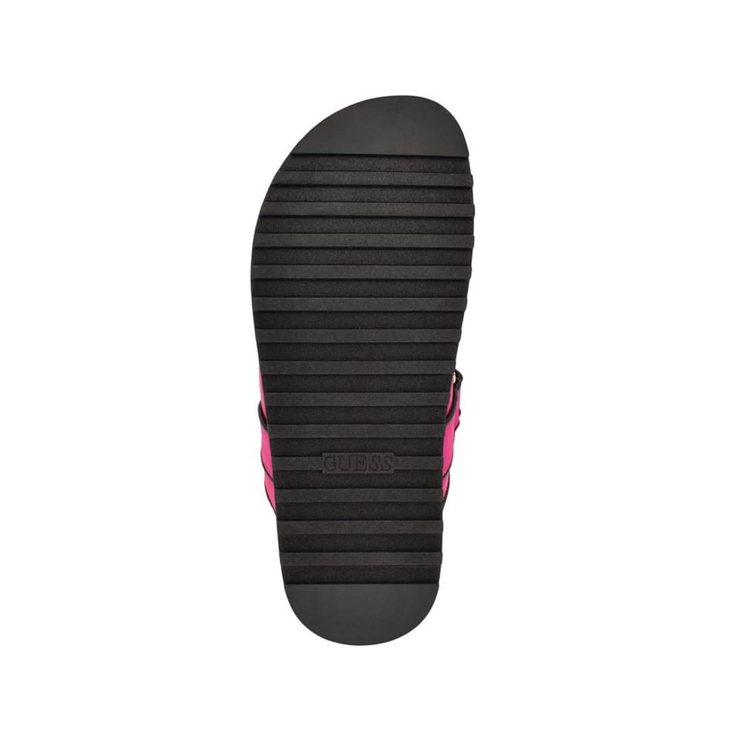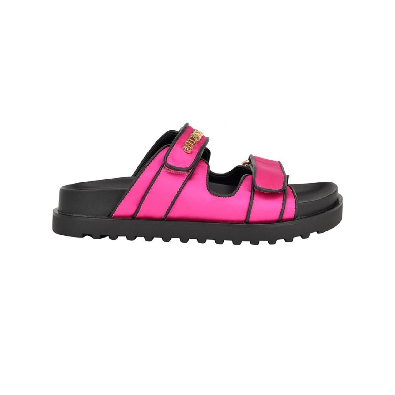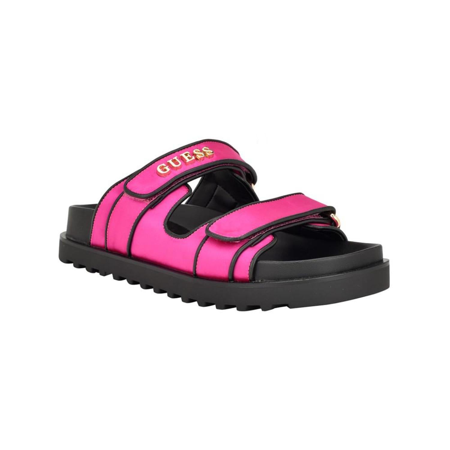 • Walk on the wild side in the GUESS Fabulonn slide. The Polyurethane dual strap upper accented by the signature GUESS logo gives you a luxe addition to your warm weather wardrobe. Established. 1981, GUESS is a global lifestyle brand and a symbol of a young, adventurous lifestyle.