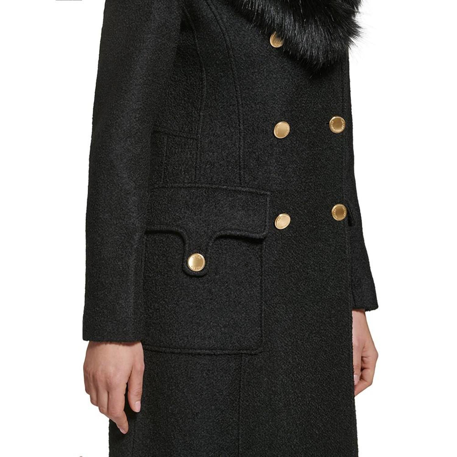 Women's Faux-Fur Collar Double-Breasted Walker Coat