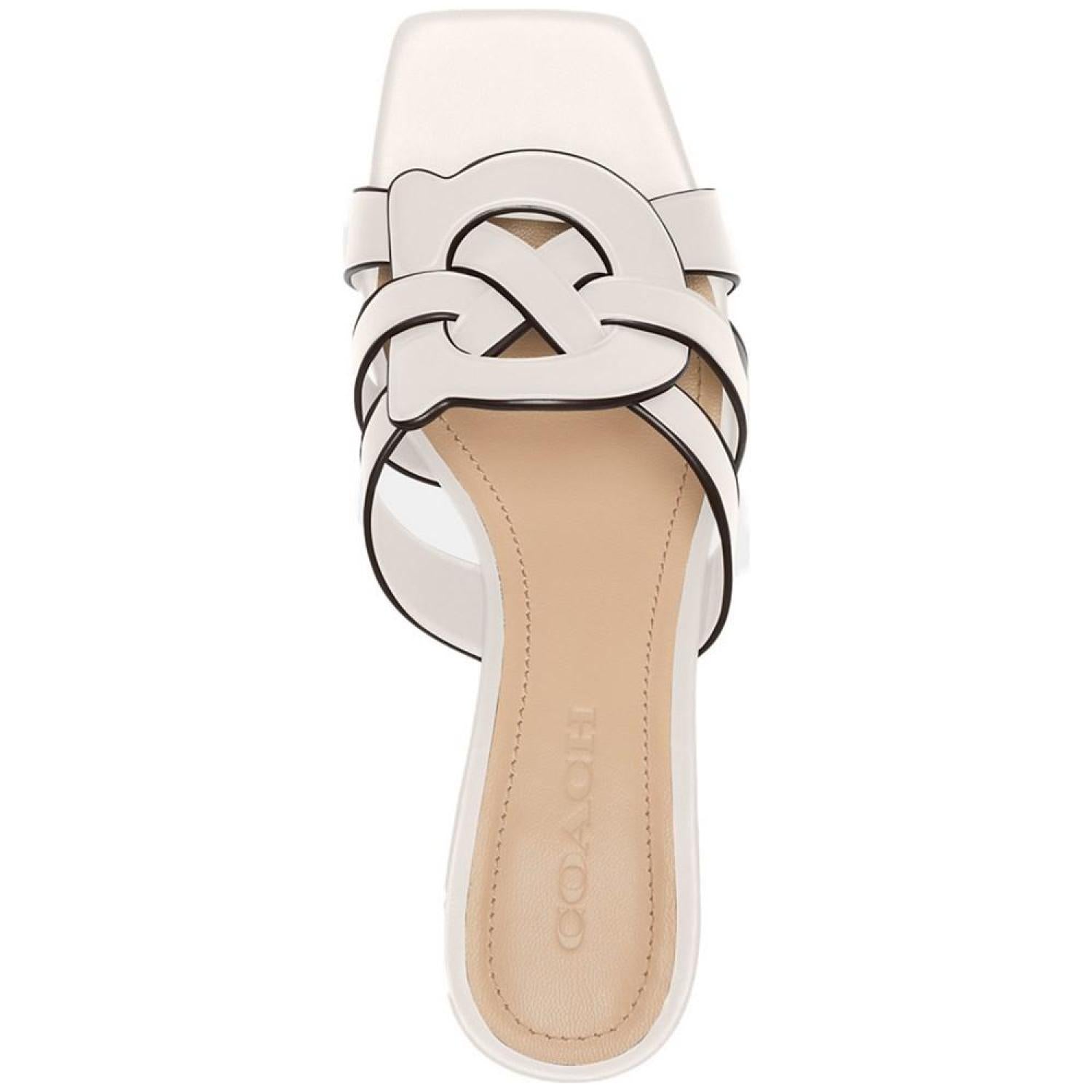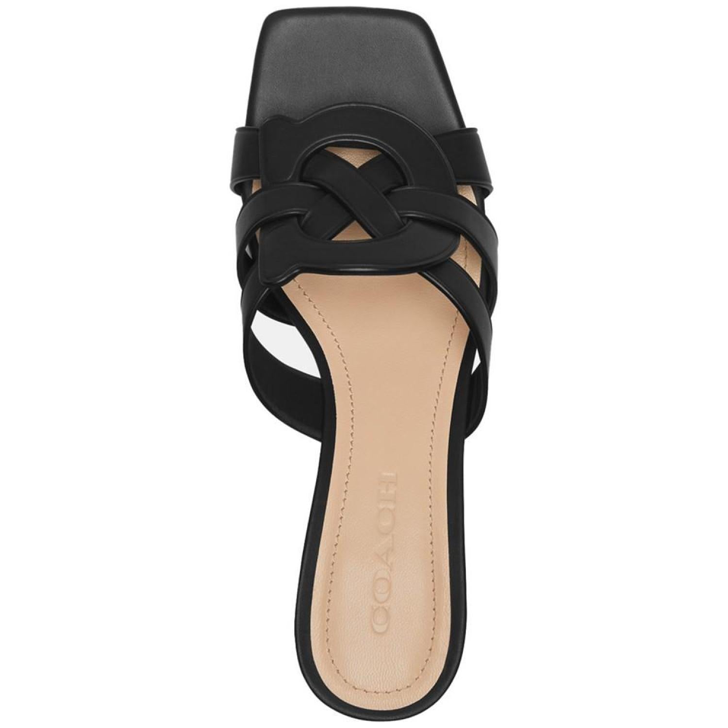 The iconic COACH initial C is intertwined with strappy style, delivering an upscale look to the Nikki slide sandals.