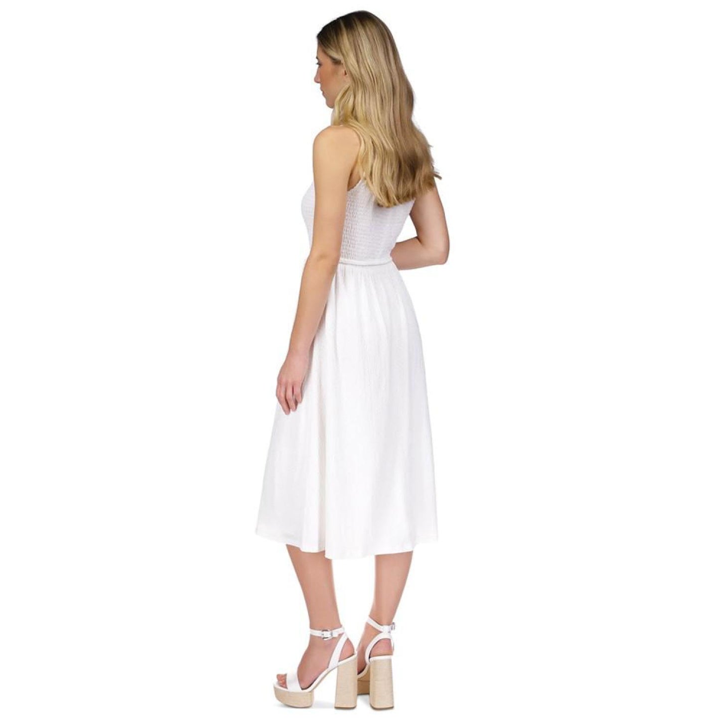 A fits-like-a-glove smocked bodice falls to a stylishly textured skirt, bringing a fresh look to the classic beach cool of this MICHAEL Michael Kors midi dress.
