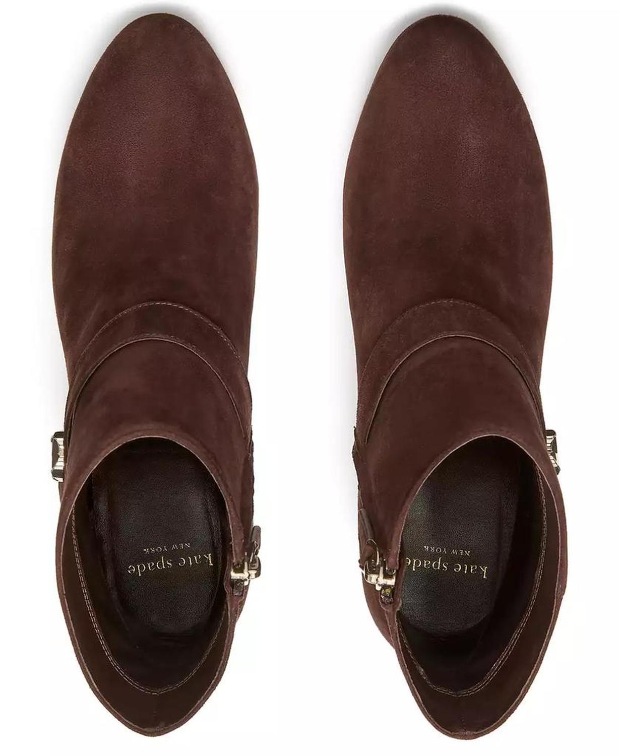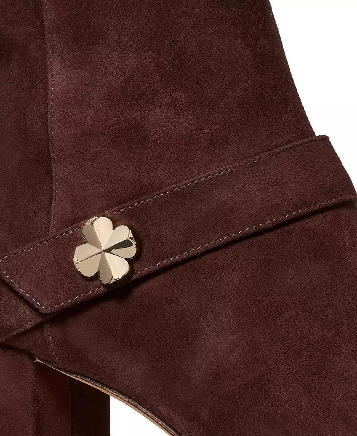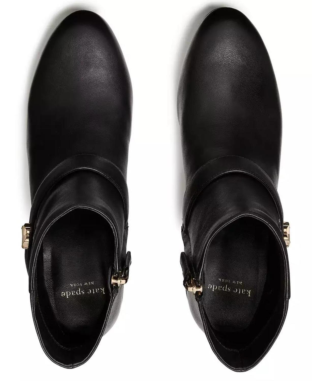 Modern character defines these kate spade new york decorative flower ankle booties, featuring a block heel for a stable foundation. The almond toe balances shape, while a full zip closure works with the single sole for clean wear. Heel style: block heel Heel height: 2.28" Shaft height: 4.52"; shaft circumference: 10.62" Calf width: regular Toe shape: almond toe Closure: full zip Sole type: single sole Upper & outsole: leather; lining: textile Imported