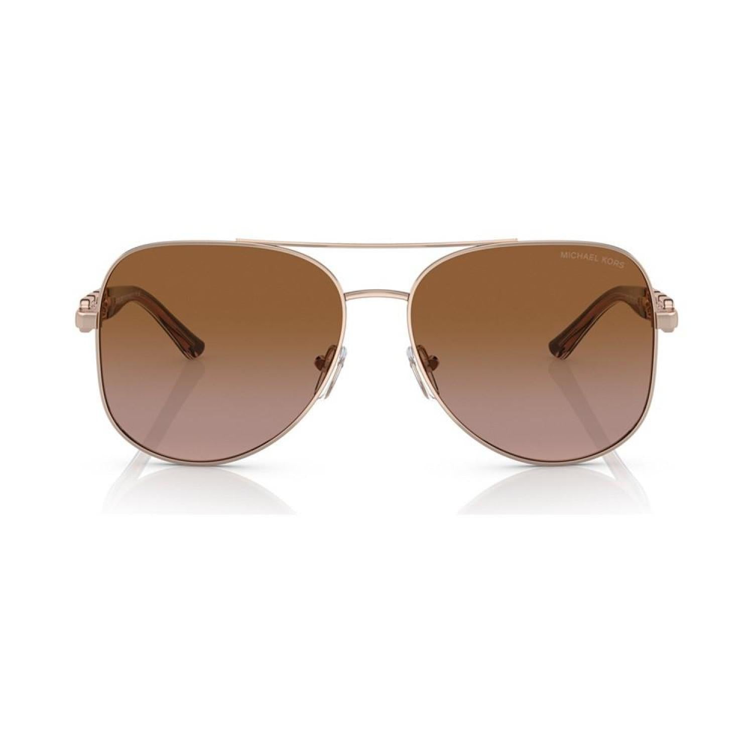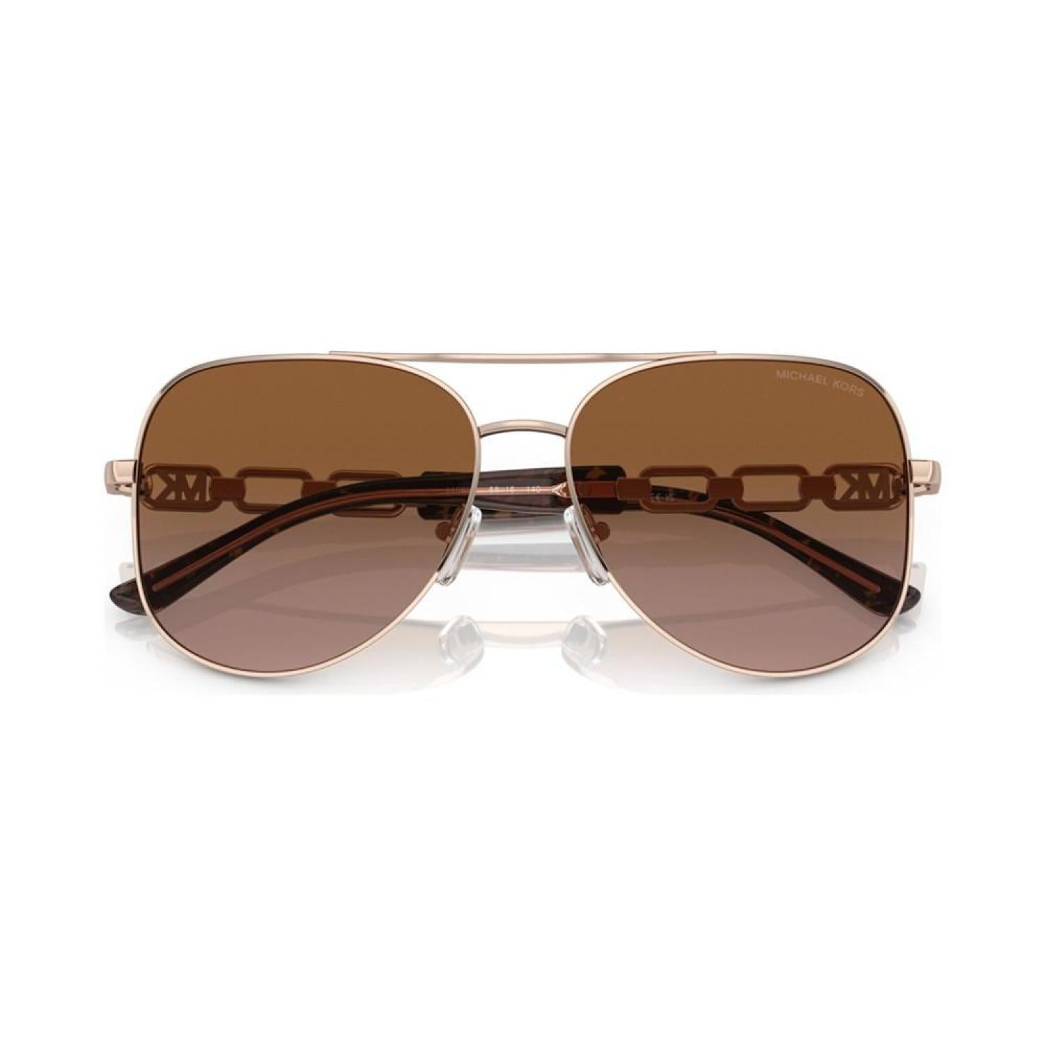 Michael Kors is a world-renowned, award-winning designer of ready-to-wear fashion and luxury accessories. With an innate sense of glamour and an unfailing eye for timeless chic, Michael Kors offers a luxury lifestyle as pragmatic as it is indulgent and as timeless as it is modern. Frame shape - Pilot Frame material - Metal Frame type - full rim Gender - Female Eye/Bridge/Temple width - 58/15/140 Lens features - gradient Best for face shape - Oval, heart, square Low bridge fit - No Injected Wipe Clean Imported