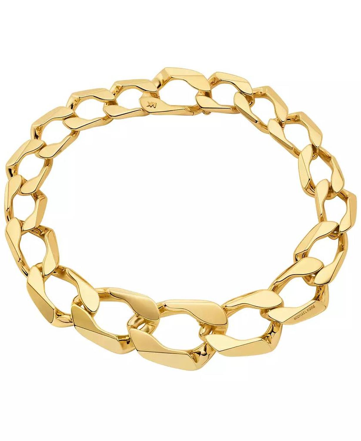 Discover the epitome of visionary style with our latest addition to the Metallic Muse collection, inspired by the unparalleled flair of Michael himself. The design and scale of the necklace adds depth to any look. This piece features a hidden fold-over closure for a secure and stylish fit. It drapes flawlessly on the neck, destined to captivate attention wherever you go. Set in Gold-tone brass Approx. drop: 16.92", 1.31" Fold over closure Wipe clean Imported