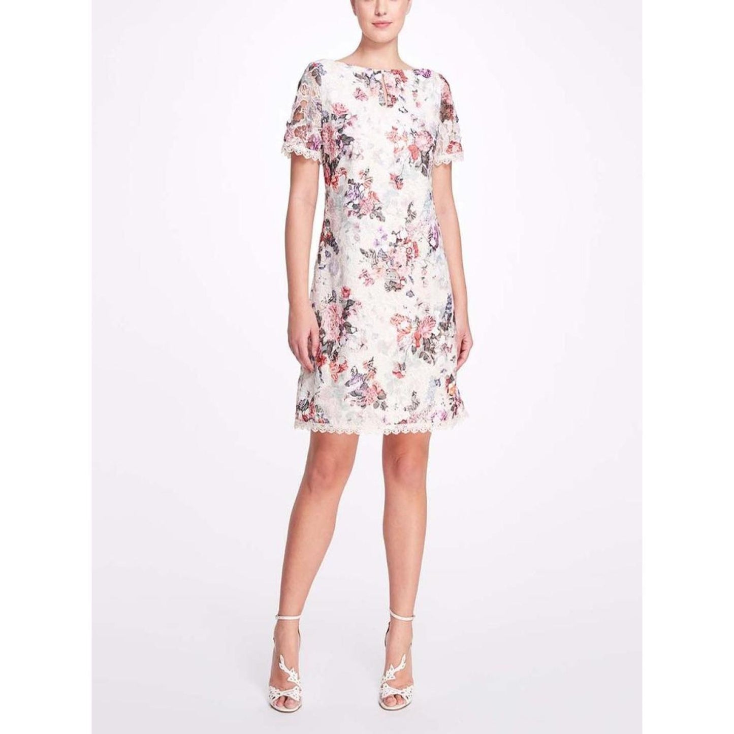 A keyhole cut-out neck, a V-back add, and a multicolour dyed lace dress.