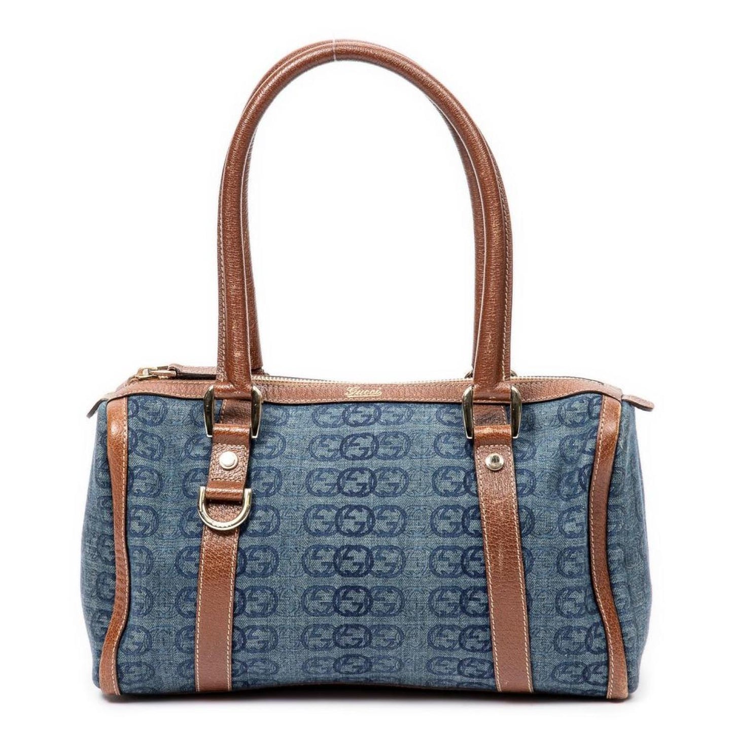 Gucci Handbag in Blue/Brown Interlocking GG Print Canvas and Gold hardware. Dimensions - 29*16*11cm. Serial number - 130942-1781. Inclusions - Dustbag.