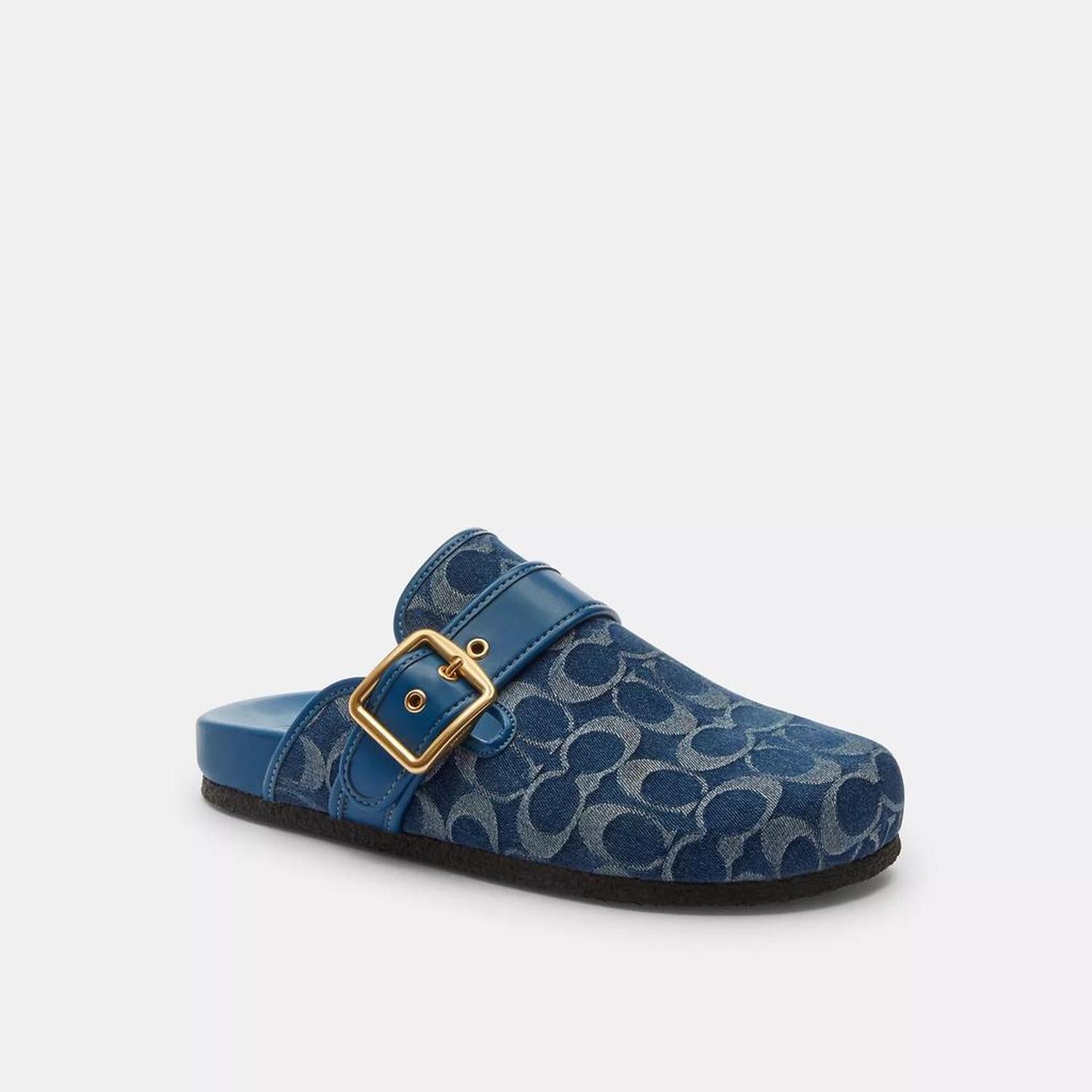 Signature denim upper Man-made leather lining and footbed Rubber outsole Slip on 3/4 platform Style No. CZ143 | Coach Outlet Ashton Clog In Signature Denim - Blue, Size - 9