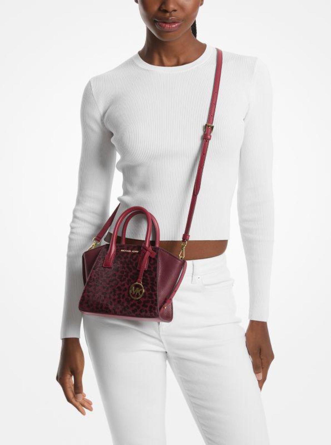 Avril Extra-Small Cheetah Print Calf Hair and Leather Satchel
