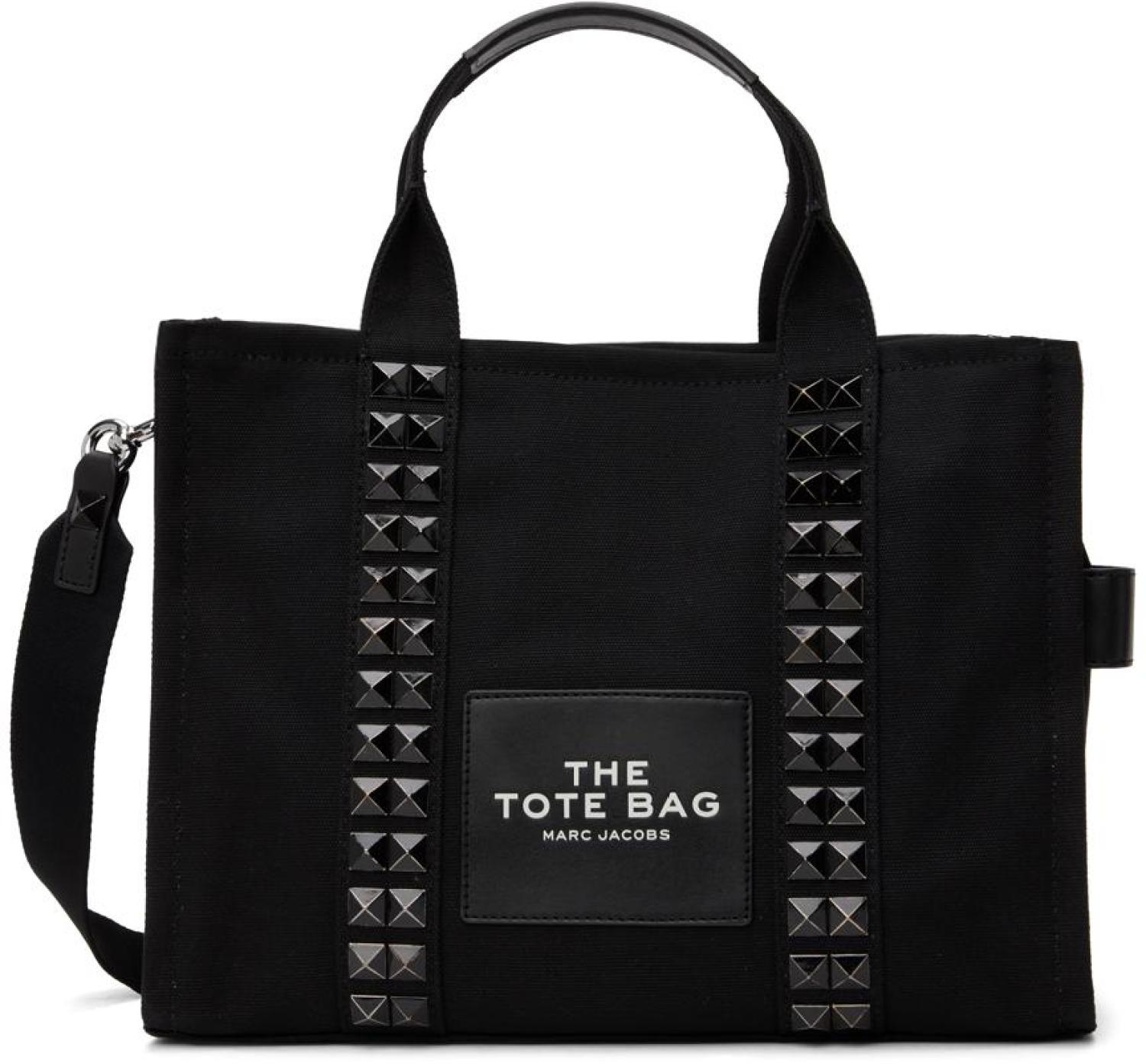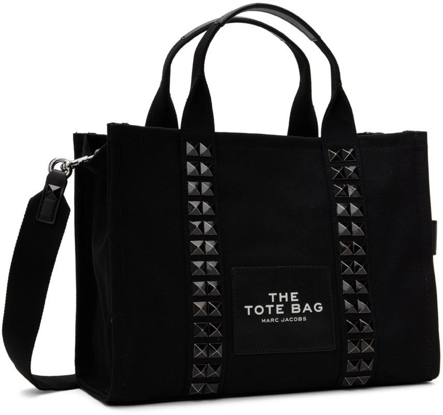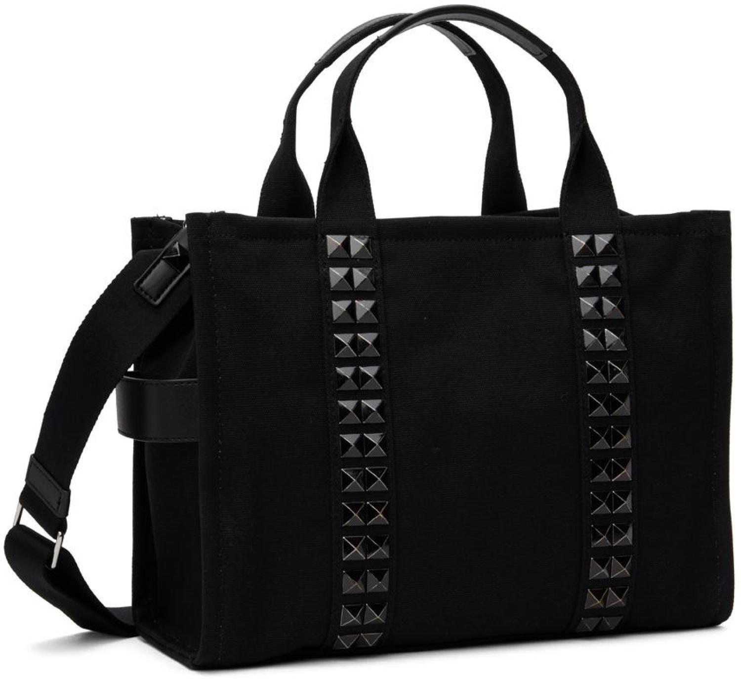 Cotton canvas tote in black. Studded detailing throughout.
