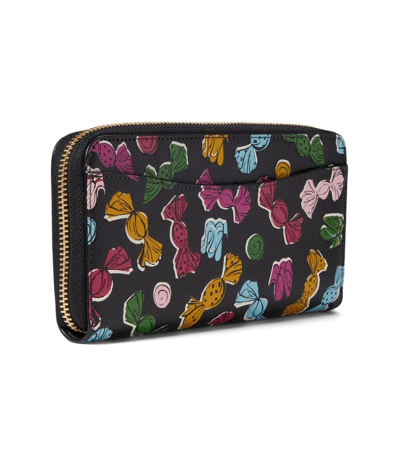 - Add some charm to your look by carrying the Kate Spade New York® Bon Bon Candy Print Zip Around Continental Wallet. Leather construction. Zippered closure. Zippered interior pocket. Four interior slip pockets. Twelve credit card slots. Allover multicolor candy design. Brand detailing on the front. Leather lining. Imported. Measurements: Bottom Width: 7 1/2 in Depth: 1 in Height: 4 in Weight: 7 oz