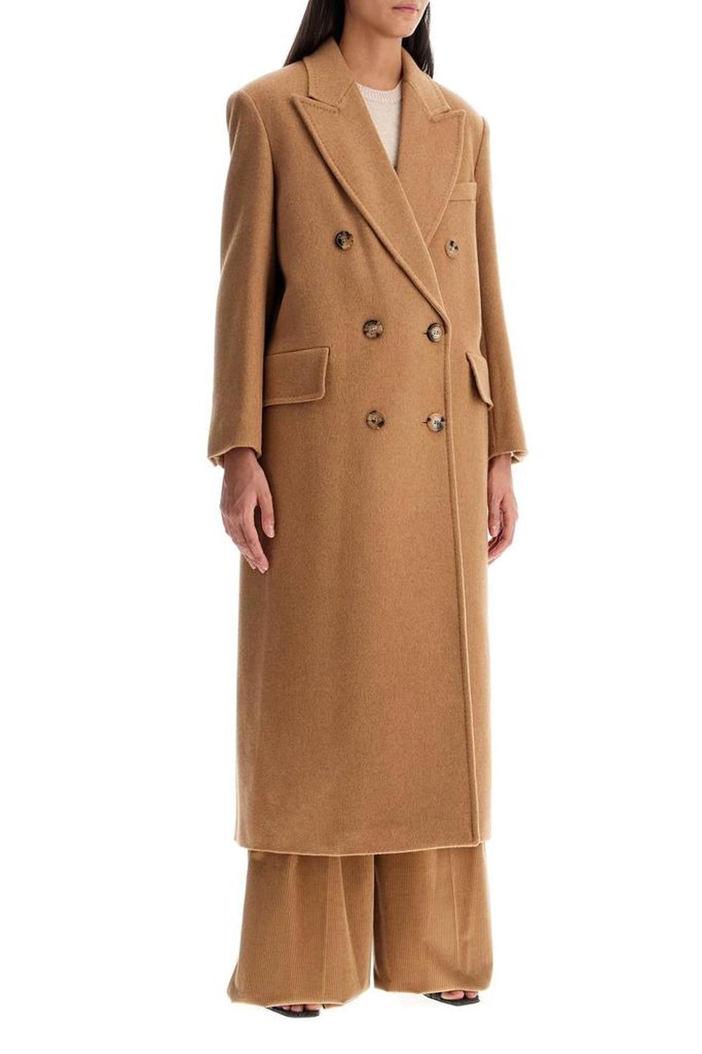 • This Max Mara double-breasted coat is made of pure camel hair in a regular silhouette, with a deep back yoke and buttons and a waist martingale for added emphasis. It features a peak lapel collar, a chest pocket, and two front pockets with flaps. The interior is fully lined. The model is 177 cm tall and wears an IT size 38.