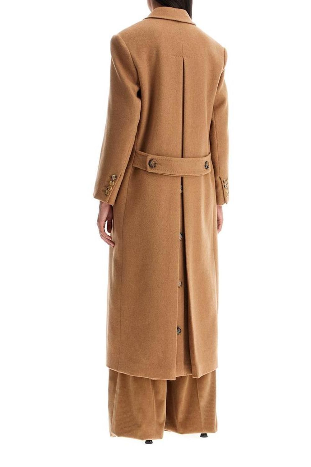 This Max Mara double-breasted coat is made of pure camel hair in a regular silhouette, with a deep back yoke and buttons and a waist martingale for added emphasis. It features a peak lapel collar, a chest pocket, and two front pockets with flaps. The interior is fully lined. The model is 177 cm tall and wears an IT size 38.