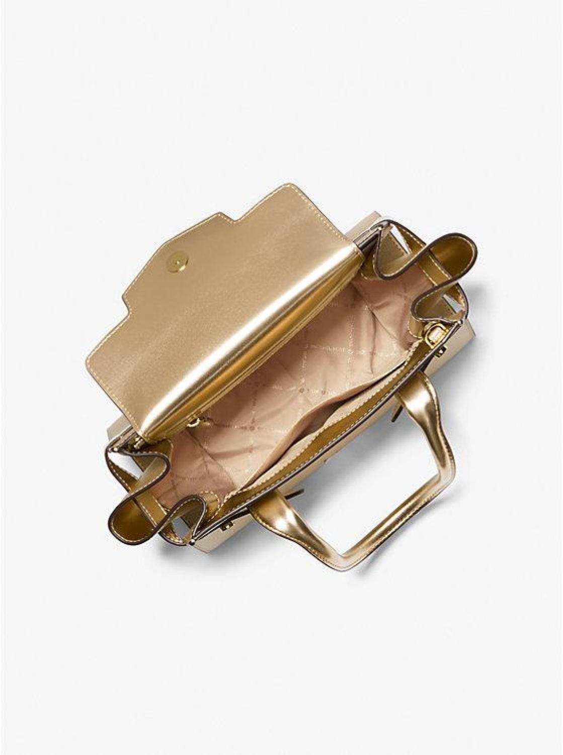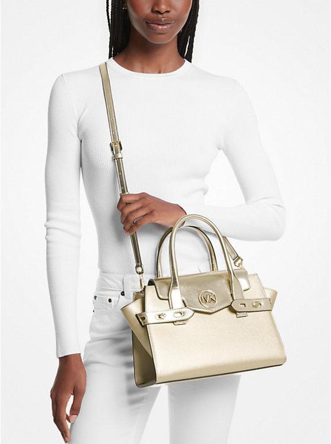 Carmen Medium Metallic Faux Leather Belted Satchel