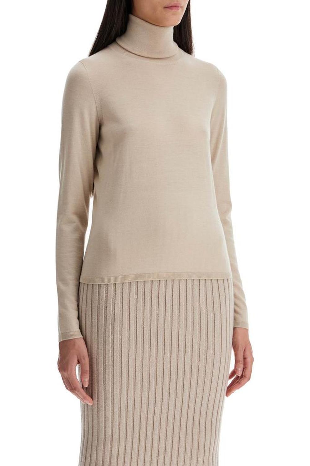 Crafted from a lightweight pure cashmere yarn, this turtleneck sweater from the Max Mara runway collection features a seamless fitted silhouette with ribbed edges. The model is 177 cm tall and wears size S.