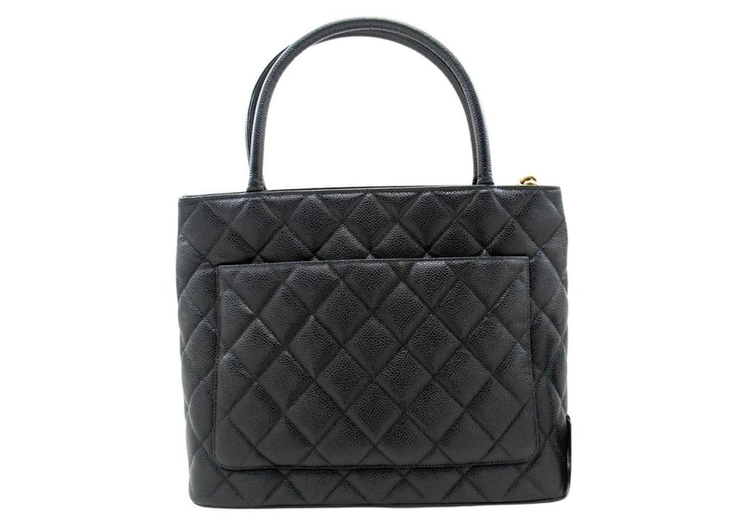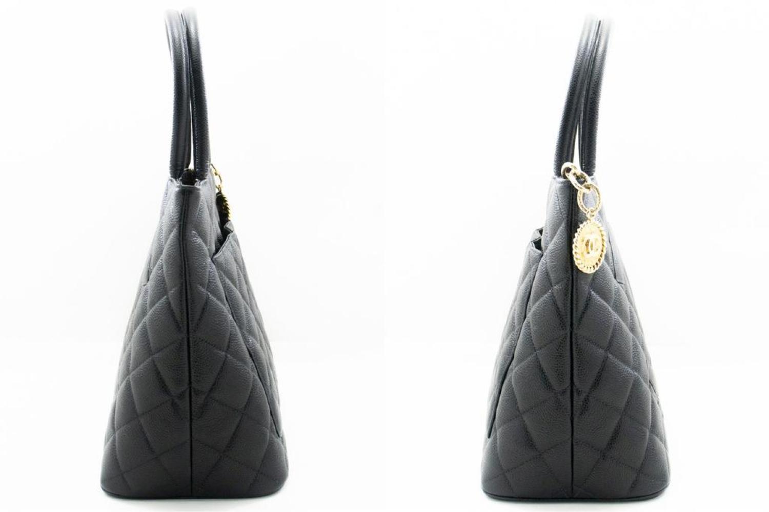 Brand - ChanelModel - MedaillonColor - BlackMaterial - LeatherInclusions - dust bagDimensions - W 29.5 H 23.8 L 14.5 cmSerial number - 7868377Country of origin - FranceCondition - AB - good condition.Introducing the CHANEL Gold Medallion Caviar Shoulder Bag Grand Shopping Tote, a sophisticated accessory crafted from exquisite black grained calfskin, known as Caviar leather. The exterior of the bag exudes timeless elegance, featuring the iconic gold-tone hardware and a secure zipper closure. The Caviar leather not only adds a luxurious texture but also ensures durability for everyday use.In terms of condition, there are minor traces of use on the outside, attesting to the bag's authenticity and adding character to the leather. The interior, while maintaining its overall quality, shows slight staining, which is common with the wear and tear of a well-loved bag. We recommend that you look at all the pictures before making your purchase to ensure that you are satisfied with the condition of the item.