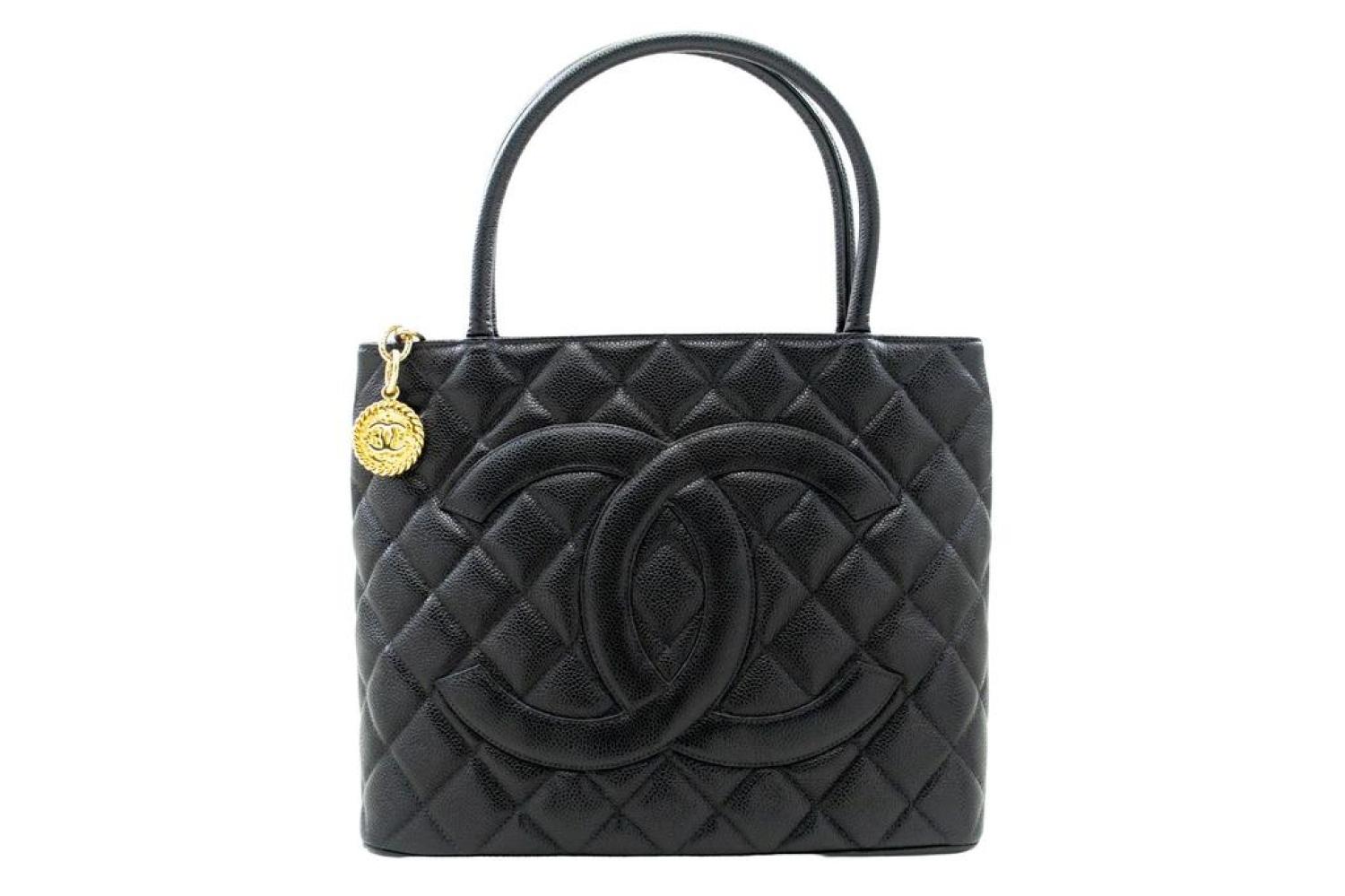 • Brand - ChanelModel - MedaillonColor - BlackMaterial - LeatherInclusions - dust bagDimensions - W 29.5 H 23.8 L 14.5 cmSerial number - 7868377Country of origin - FranceCondition - AB - good condition.Introducing the CHANEL Gold Medallion Caviar Shoulder Bag Grand Shopping Tote, a sophisticated accessory crafted from exquisite black grained calfskin, known as Caviar leather. The exterior of the bag exudes timeless elegance, featuring the iconic gold-tone hardware and a secure zipper closure. The Caviar leather not only adds a luxurious texture but also ensures durability for everyday use.In terms of condition, there are minor traces of use on the outside, attesting to the bag's authenticity and adding character to the leather. The interior, while maintaining its overall quality, shows slight staining, which is common with the wear and tear of a well-loved bag. We recommend that you look at all the pictures before making your purchase to ensure that you are satisfied with the condition of the item.