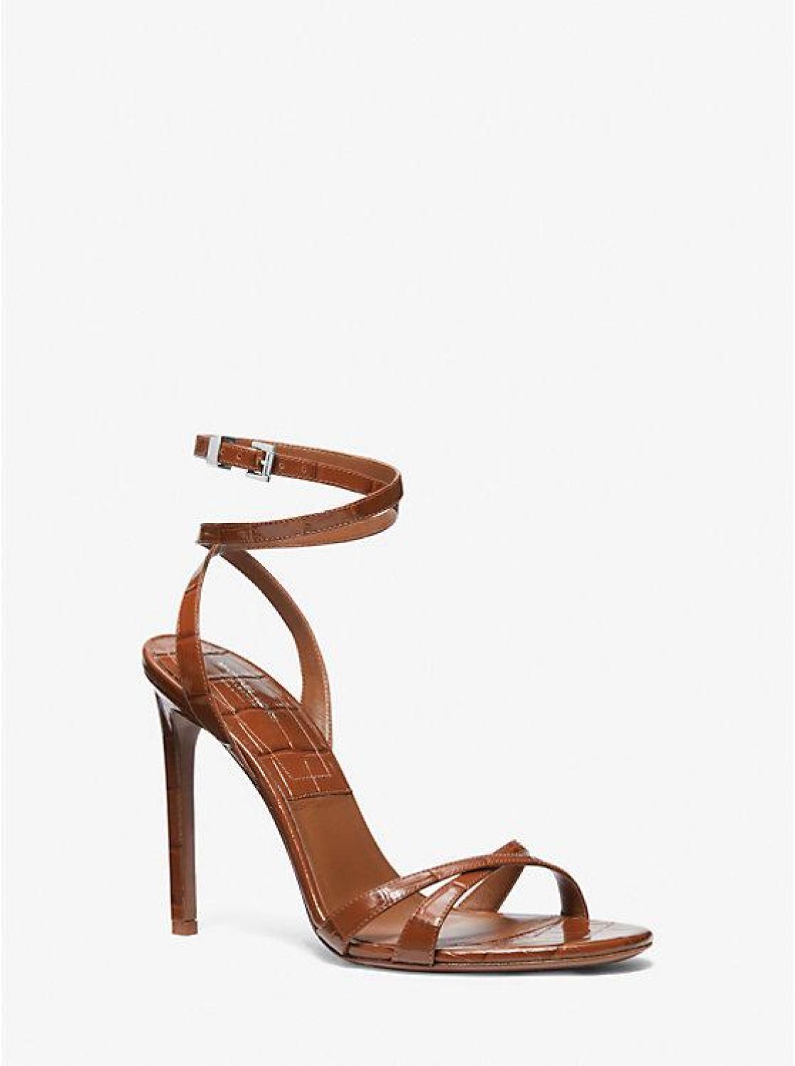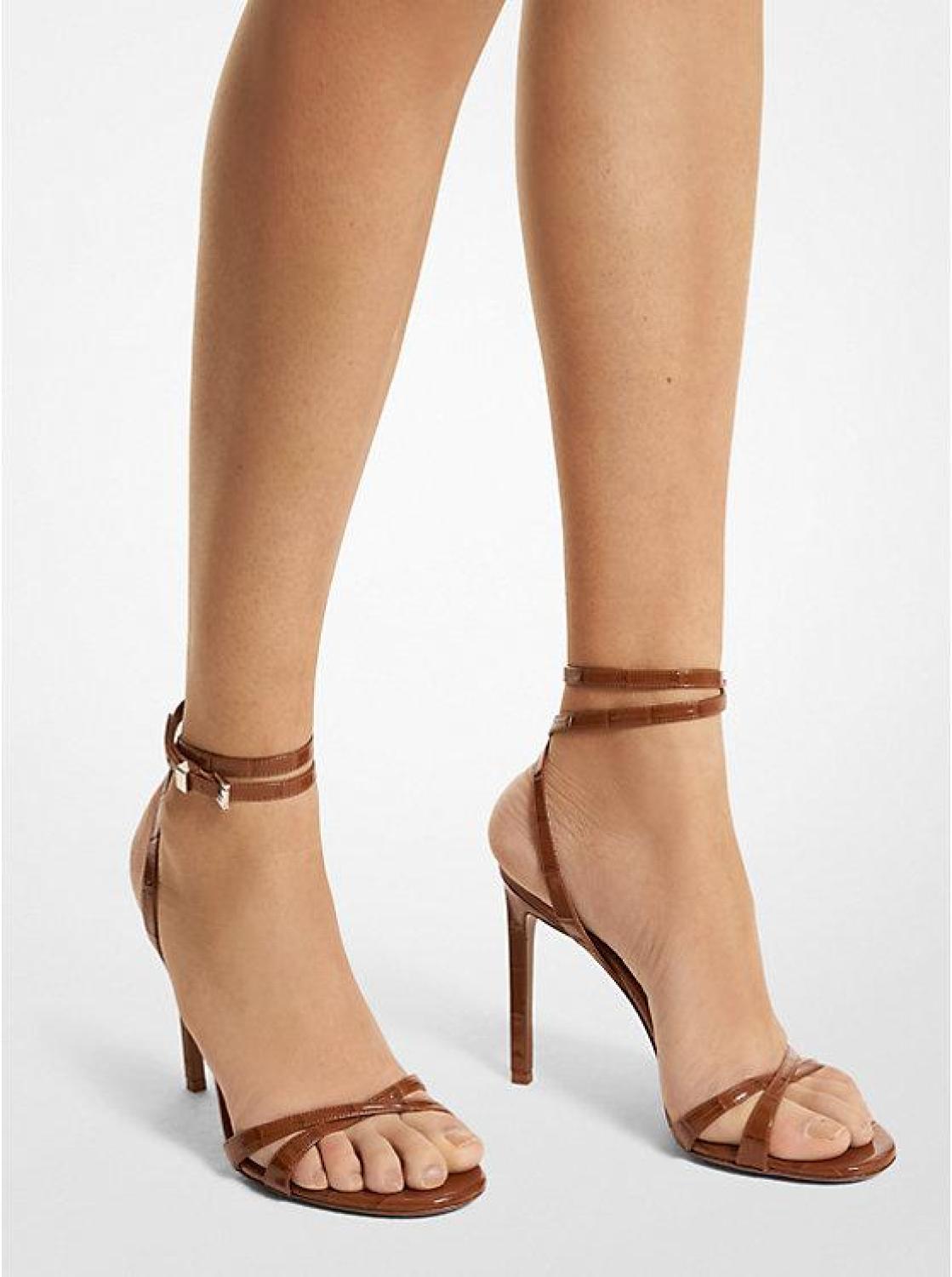 Chrissy Crocodile Embossed Leather Sandal