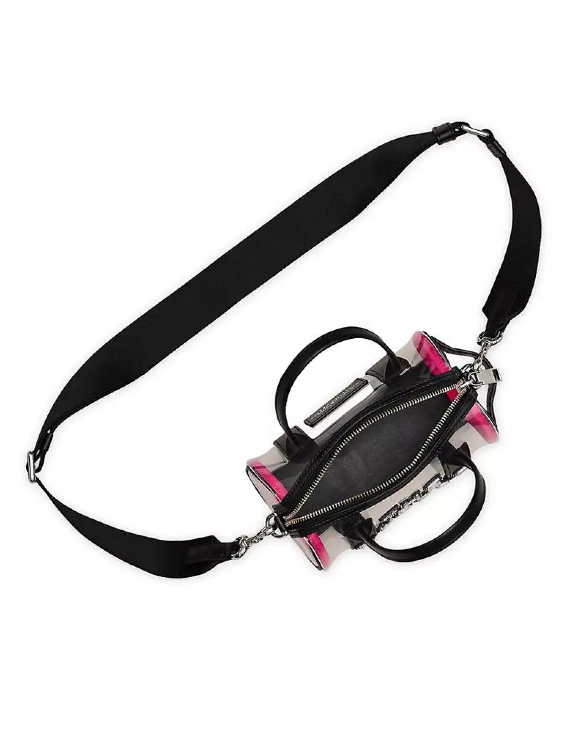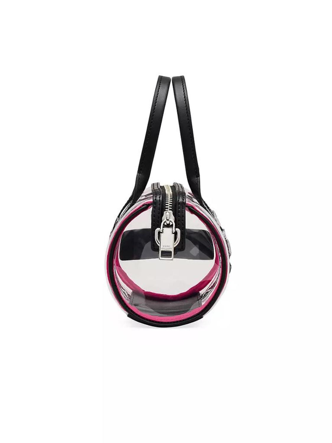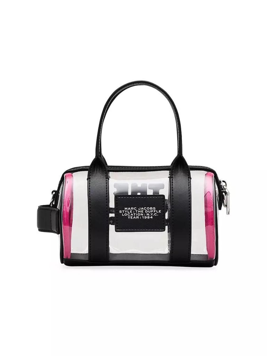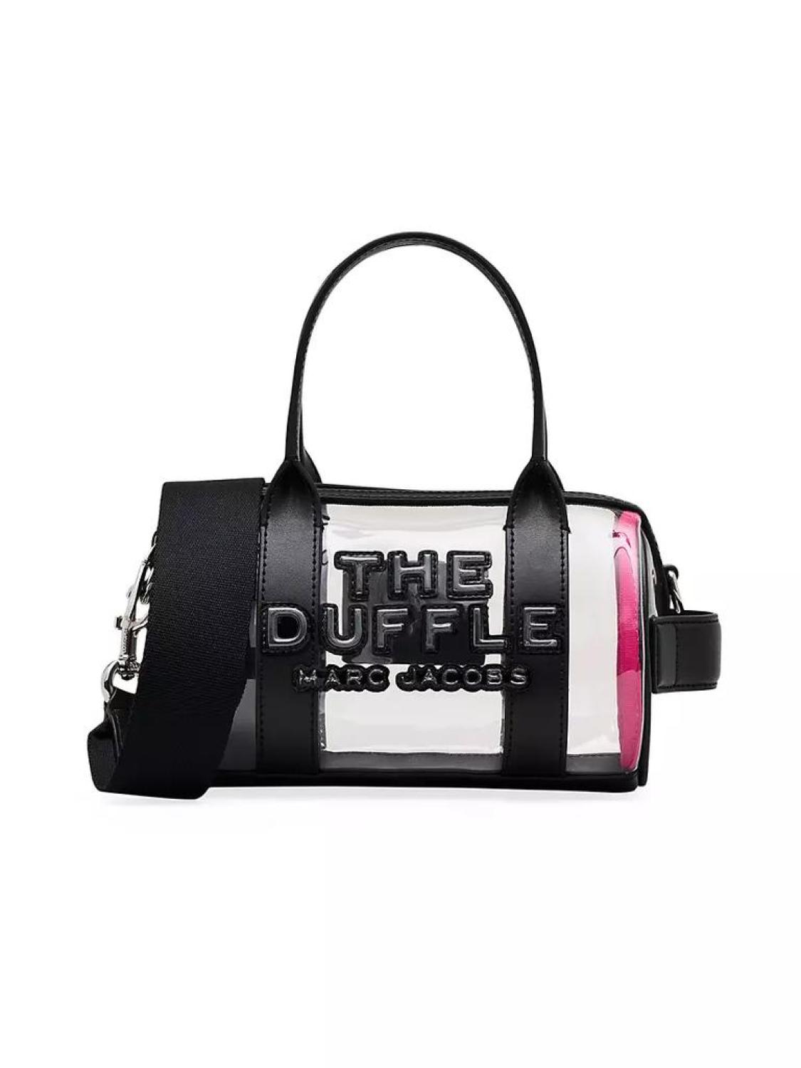 • This Marc Jacobs clear mini duffel bag is crafted of PVC and detailed with the label's signature embossed branding.