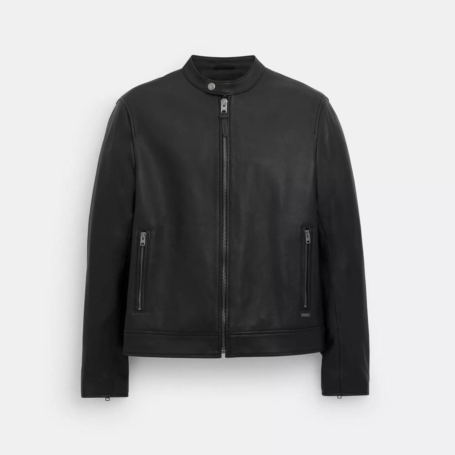 • 100% lamb leather Body lining - 58% polyester 452% viscose Sleeve lining - 56% polyester 44% viscose Zip closure Zip pockets Length - 25 Model is 6'2 (188cm) and wears a size M Style No. CS194 | Coach Outlet Leather Racer - Black, Size - Medium