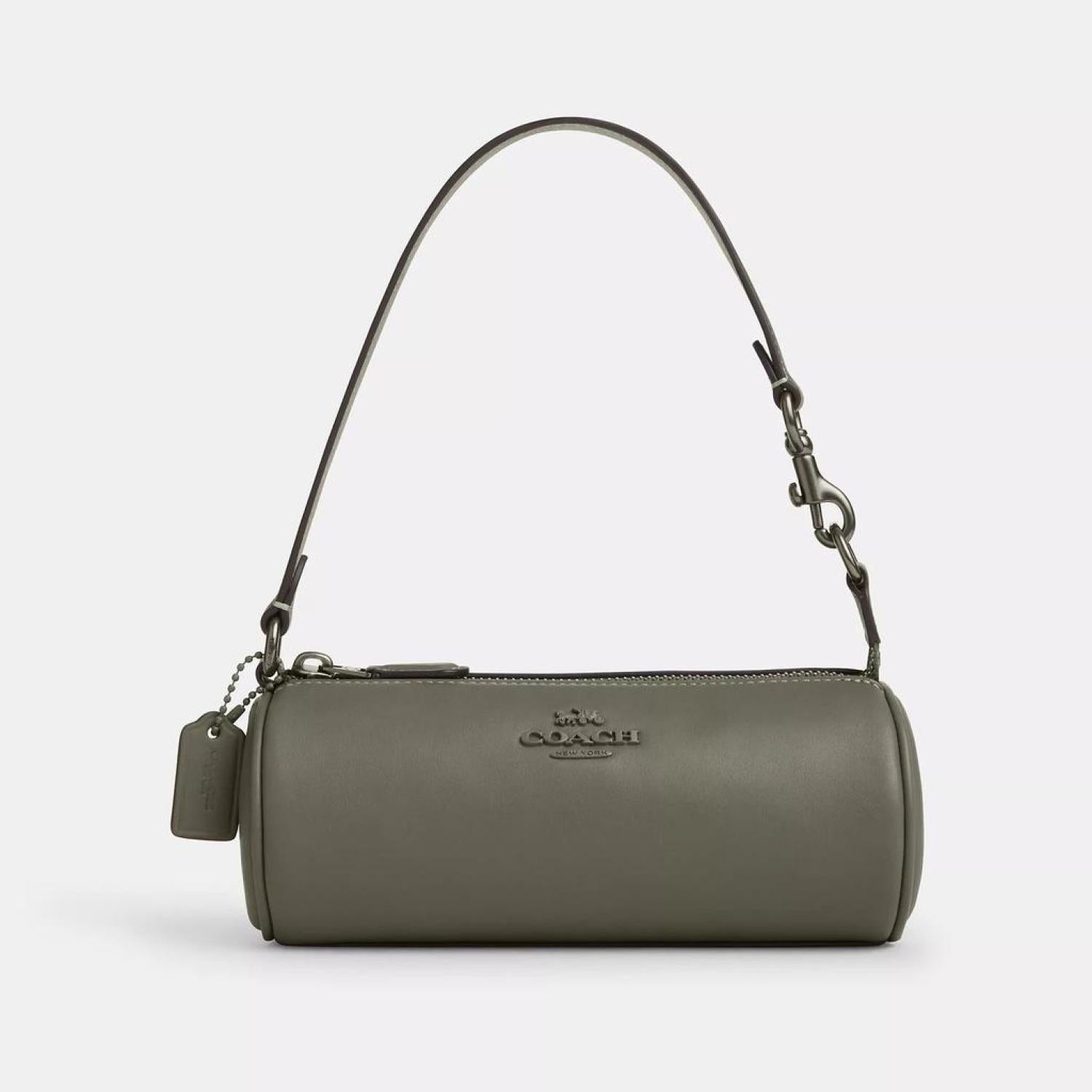 Smooth leather Zip-top closure fabric lining Handle with 6 3/4 drop 7 3/4 (L) x 3 1/4 (H) x 3 1/4 (W) Style No. CU004 | Coach Outlet Nolita Barrel Bag - Green