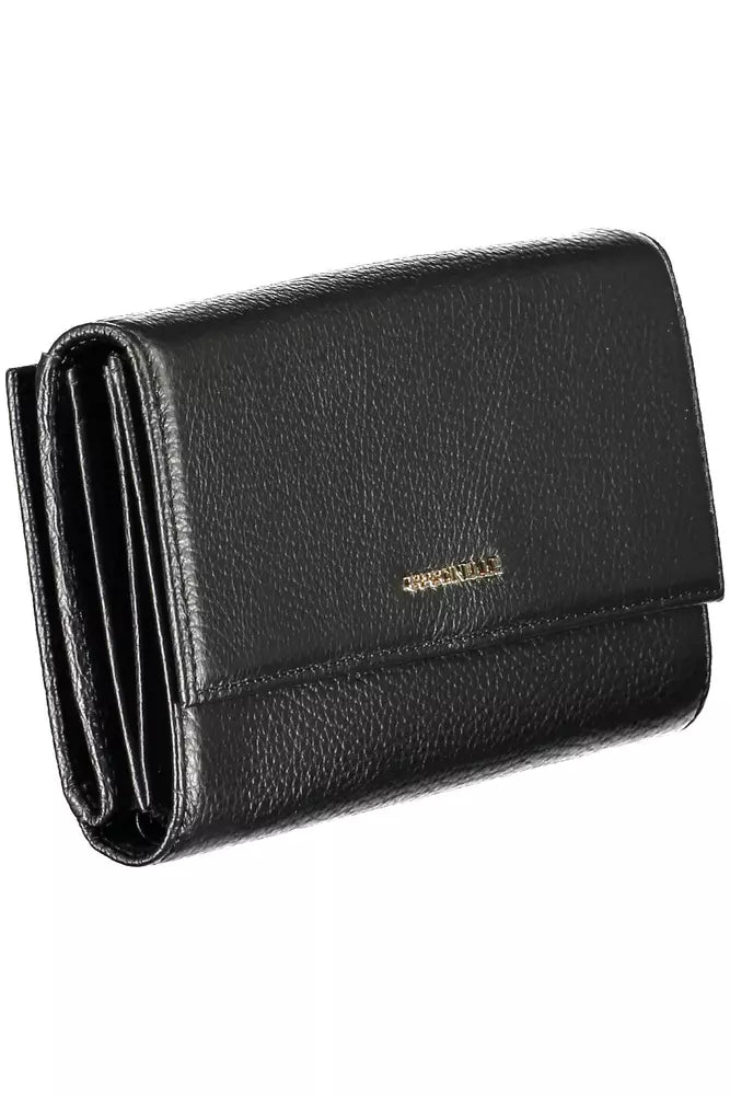 Indulge in the epitome of timeless elegance with Coccinelle’s sleek black wallet—an accessory that effortlessly blends functionality with style. This luxurious piece opens to reveal three well-organized compartments, a coin purse secured with a zip, and a snap closure ensuring your valuables are always well-protected. The reverse side unfolds to present an impressive array of card slots, elegantly arranged for easy access. Each detail is meticulously designed, featuring the Coccinelle logo as a subtle affirmation of quality and prestige.