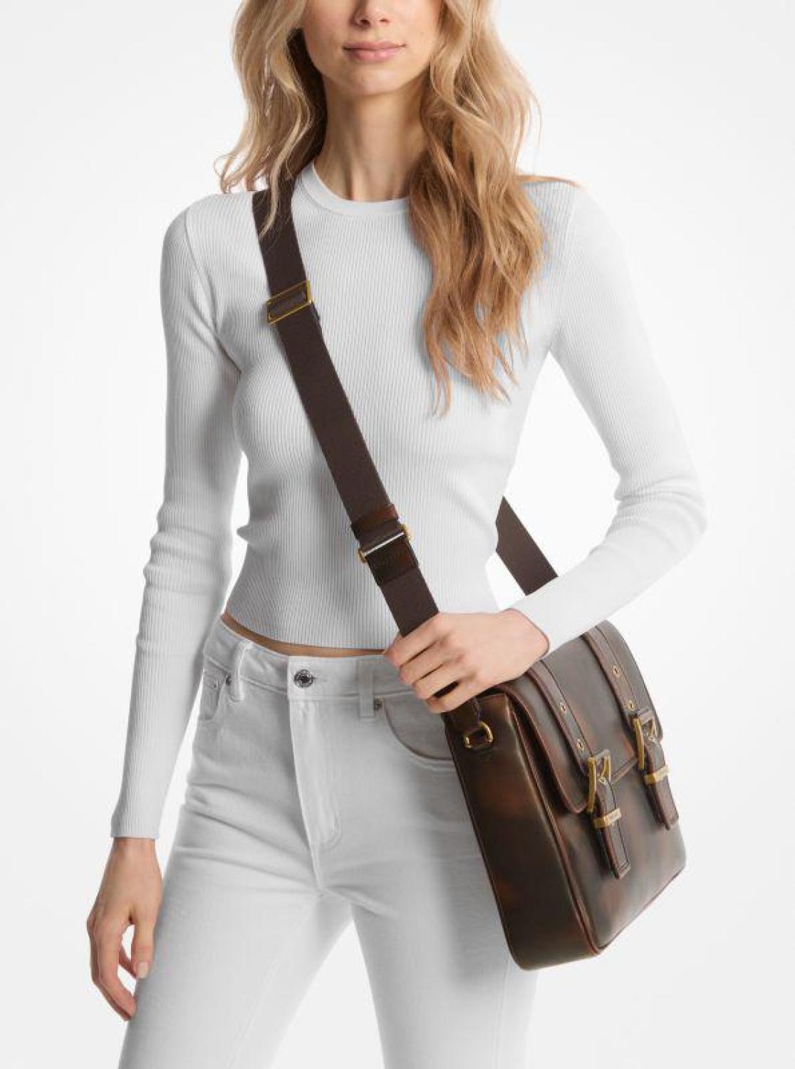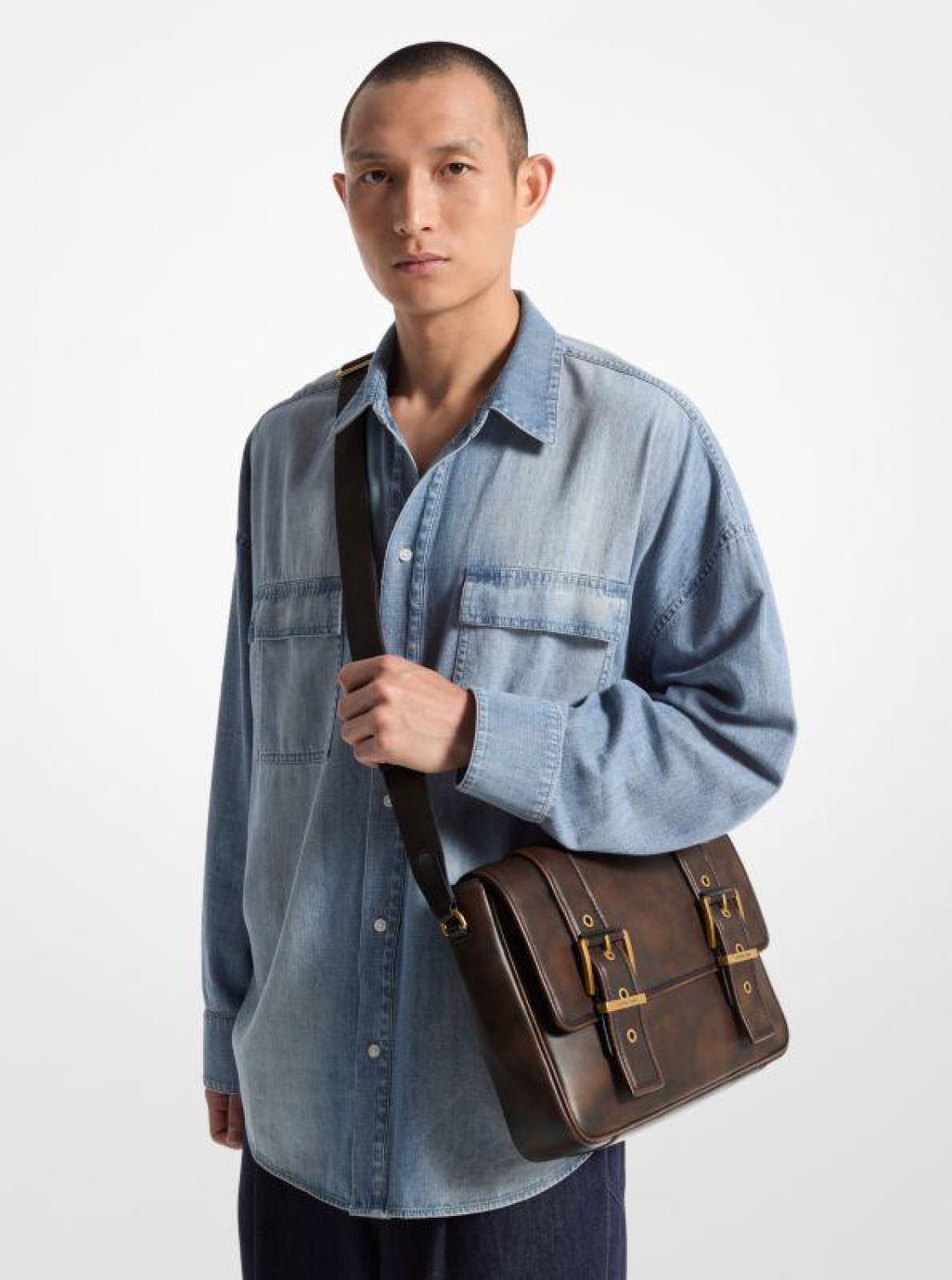 The Colby messenger bag is designed for the modern traveler. Crafted with a vintage-inspired burnished leather exterior, it features two antique gold-tone buckles atop snap closures that open to a spacious pocketed interior. Inside, a back zip pocket and phone pocket keep things organized, while an exterior slip pocket ensures that IDs and other quick-access items are close at hand. Wear it crossbody for office commutes and off-duty adventures alike. • Messenger bag • Leather • 100% leather • Trim: 100% polyurethane • Antique gold-tone hardware • 12.25”W X 8.25”H X 2”D • Adjustable strap: 14”-27” • Exterior details: back zip pocket • Interior details: back zip pocket, front slip pocket • Lining: 100% polyester • Snap fastening • Imported • Messenger bag • Leather • 100% leather • Trim: 100% polyurethane • Antique gold-tone hardware • 12.25”W X 8.25”H X 2”D • Adjustable strap: 14”-27” • Exterior details: back zip pocket • Interior details: back zip pocket, front slip pocket • Lining: 100% polyester • Snap fastening • Imported