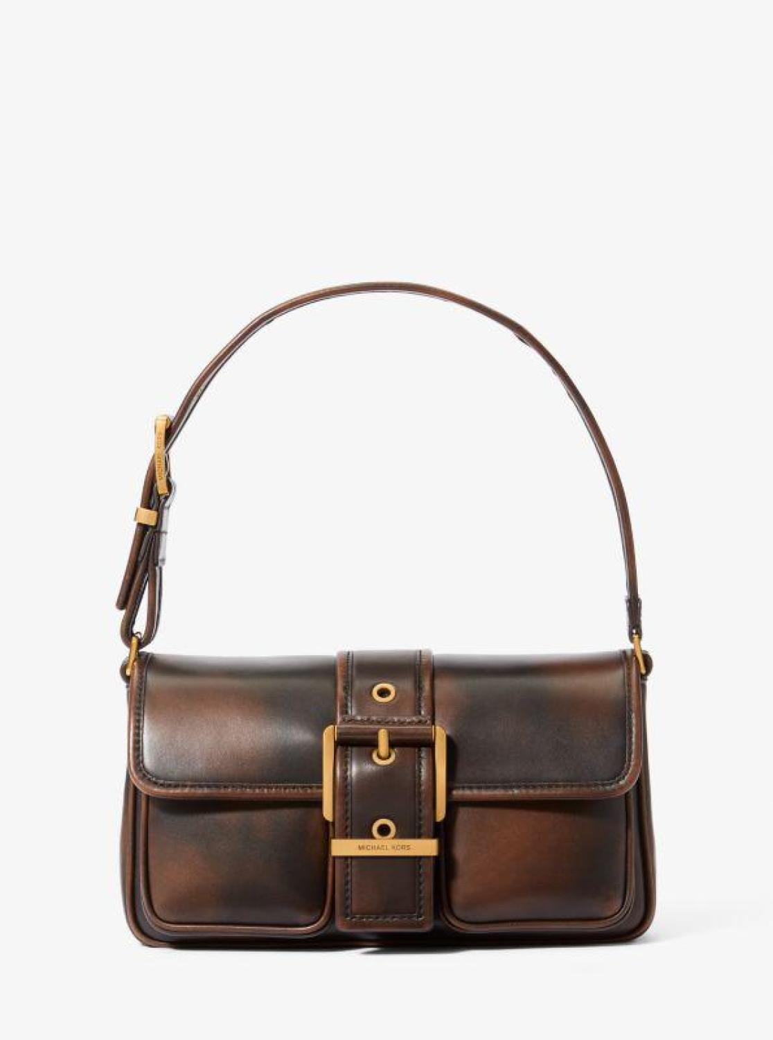 • The modern-yet-classic Colby shoulder bag evokes a cool, New York-inspired sensibility. With its sleek rectangular silhouette and bold buckle accent, this vintage-inspired style is crafted from burnished leather and designed to rest seamlessly under your arm. Match your jewelry to the antique gold-tone hardware.